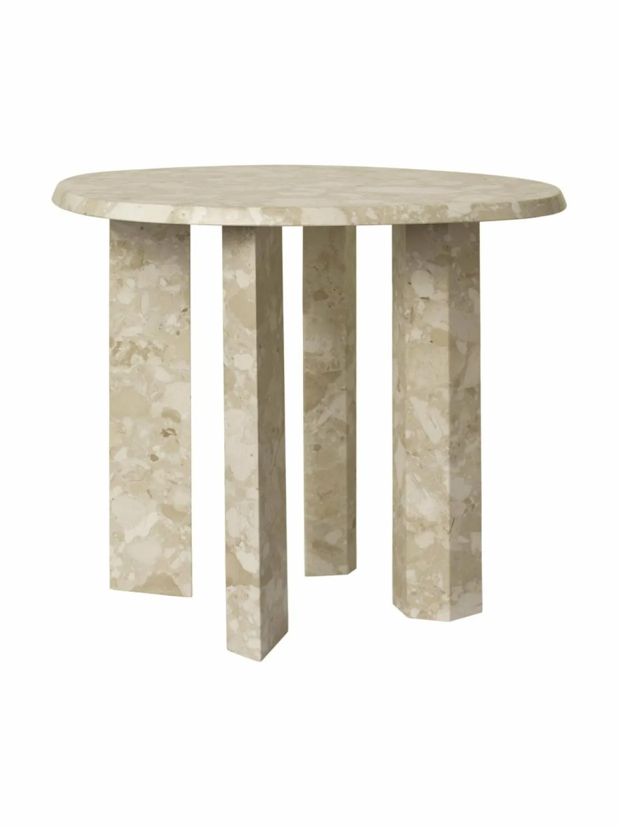 Pöytä toimitetaan litteästi pakattuna ja se on helppo koota. Pakkausmateriaalia on käytetty minimaalisesti.MateriaaliMarmori ValmistusmaaKiina VäriSAND Avainsanatferm LIVING, kahvipöytä, sivupöytä, pöytä, marmoripöytä