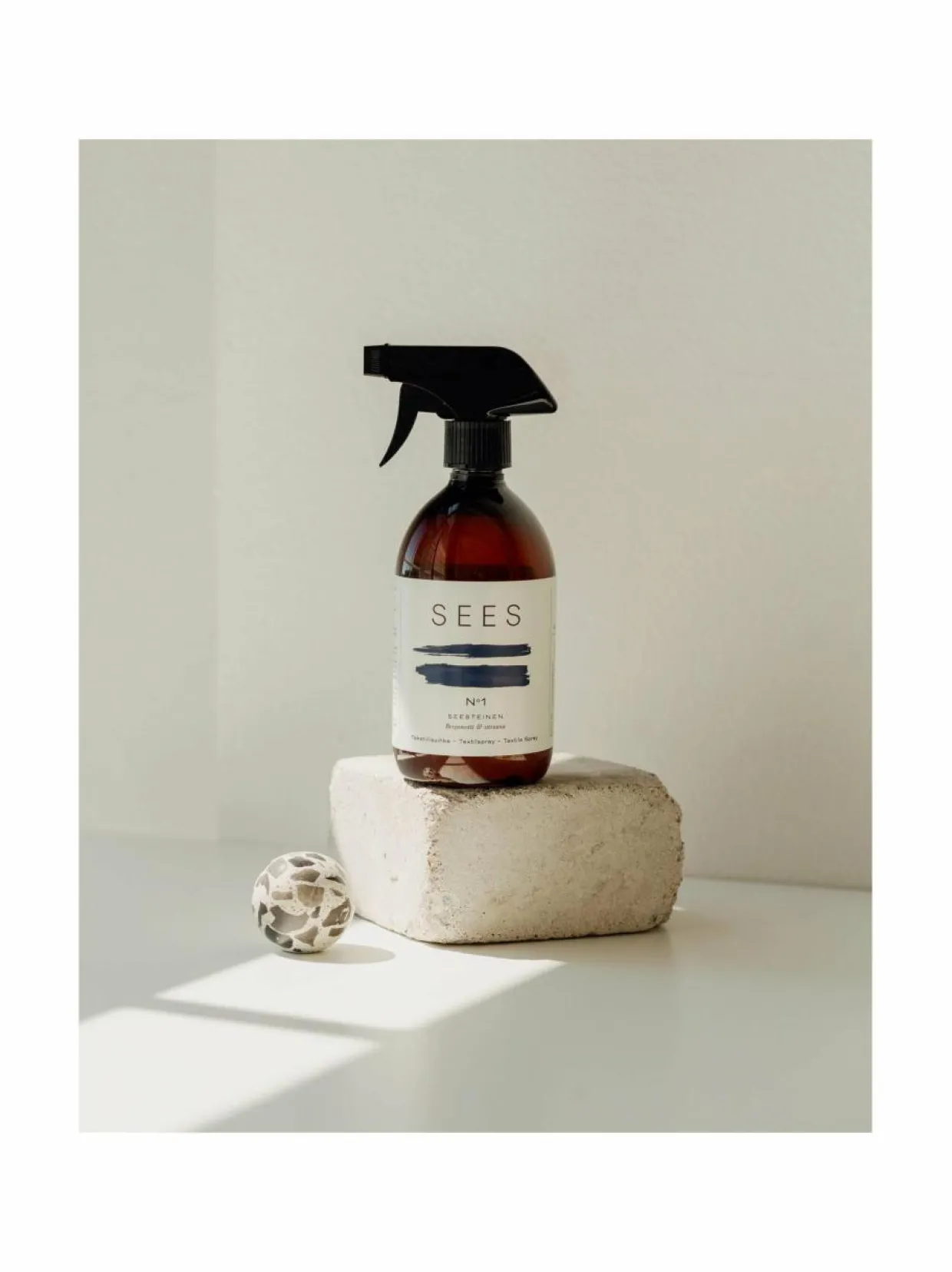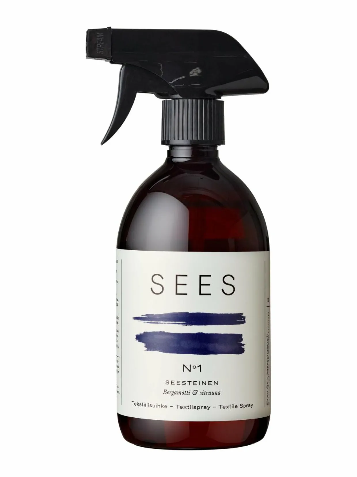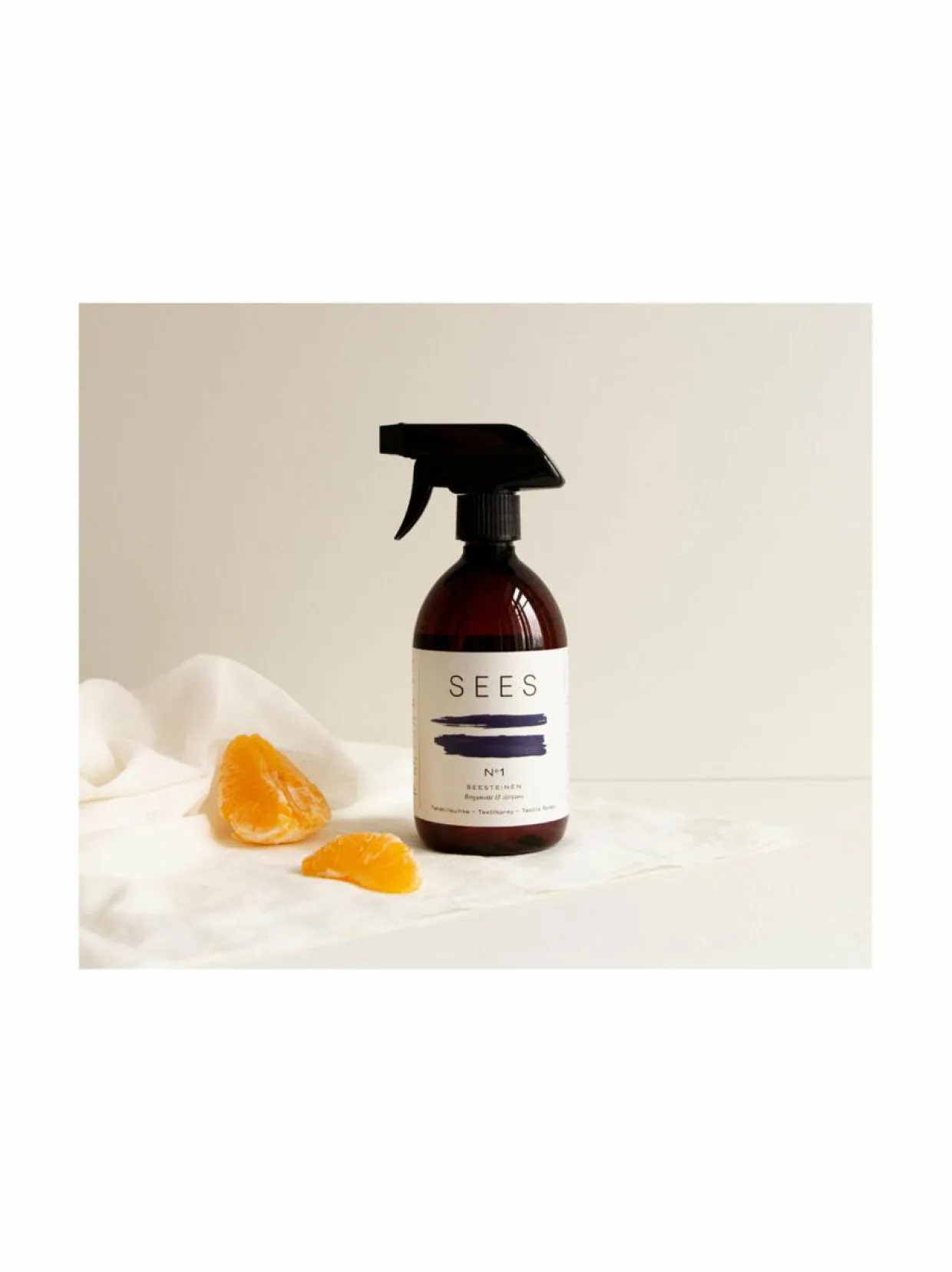 Raikkaalta tuoksuva Sees tekstiilisuihke No. 1 saa tuoksunsa bergamotin ja sitruunan eteerisistä öljyistä. Eteeriset öljyt rentouttaa mielen ja stimuloi aisteja. Suihkuta suoraan tekstiilille ja anna kuivua. Biohajoavan tekstiilisuihkeen raaka-aineena toimii väkiviinaetikka, joka on viimeistelty 100 % aidoilla ja laimentamattomilla eteerisillä öljyillä. Etikan tuoksu haihtuu tekstiilistä kuivuessaan, jolloin jäljelle jää vain raikas eteeristen öljyjen tuoksu. Sinulle, joka haluat pienentää kodin kemikaalikuormaa.