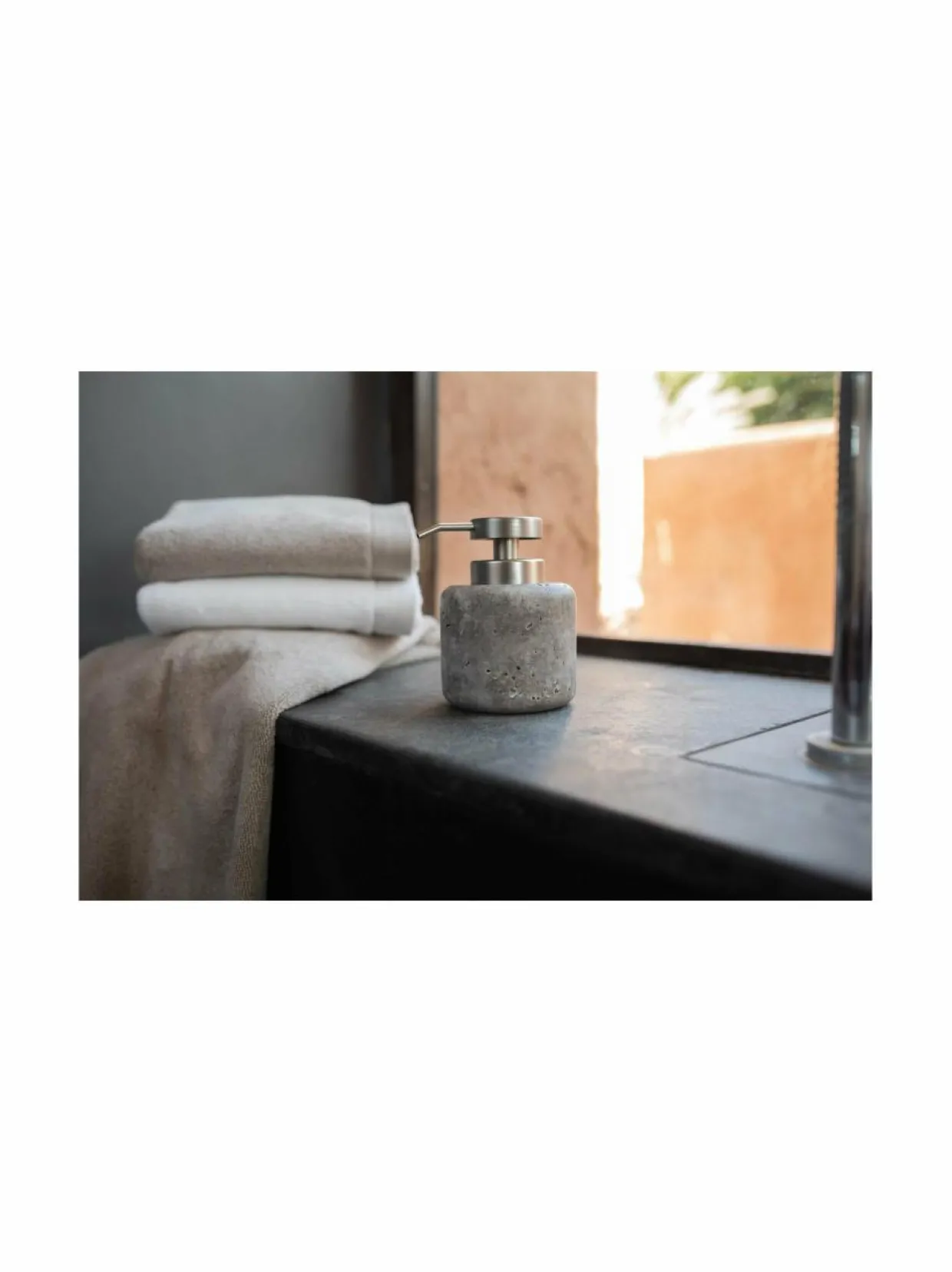 Travertiini-kivestä valmistettu Teramo-saippuapumppu luo kylpyhuoneeseesi rustiikkisen vaikutelman.