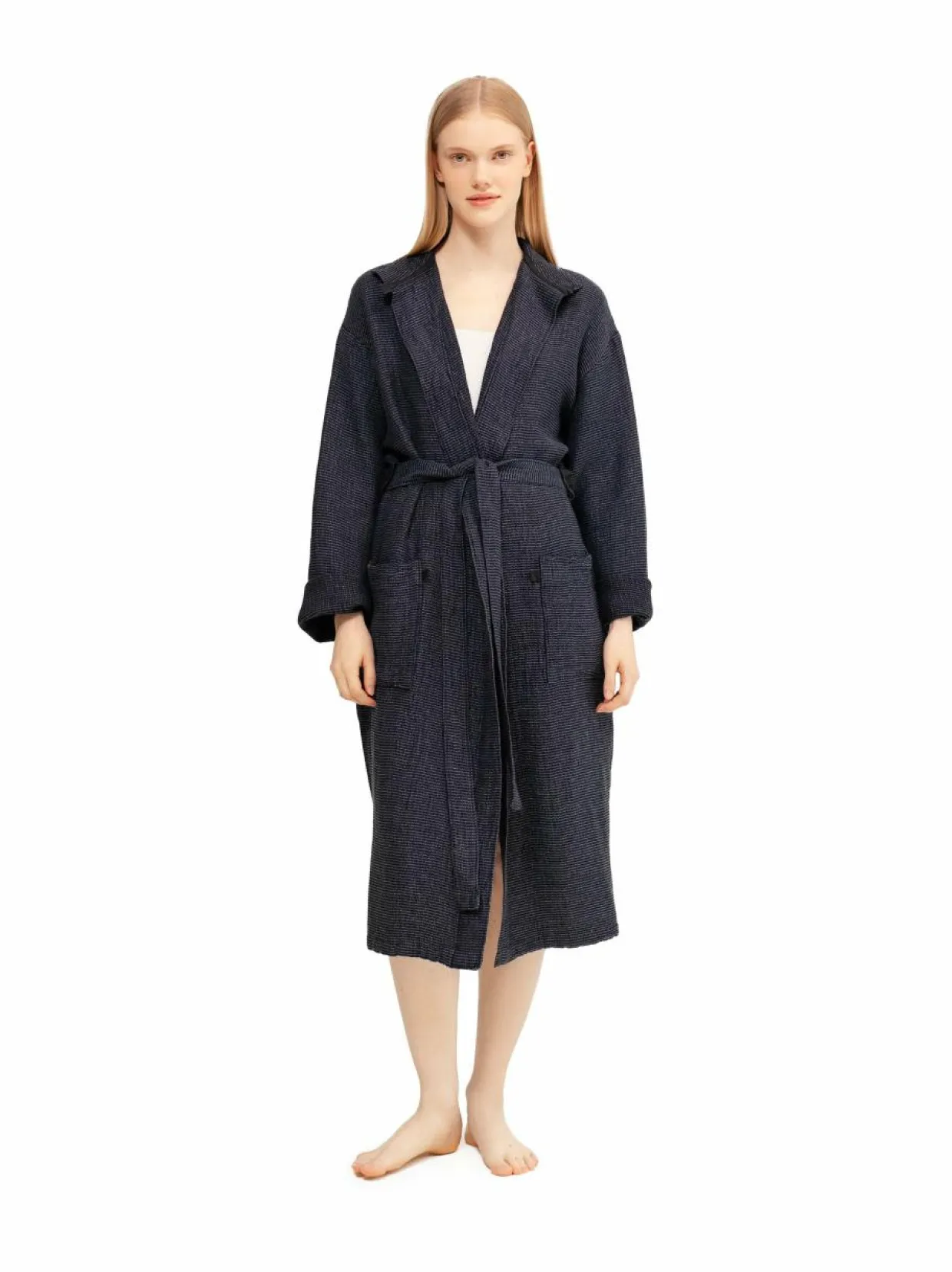 Rentoudu saunan tai suihkun jälkeen mukavassa kylpytakissa terassilla, parvekkeella tai ihan vain kotisohvalla. Vohvelikankaisessa kylpytakissa on kaksi avointa taskua ja vyötärölle kiedottava vyö. Pellavan, tencelin ja puuvillan sekoituksesta valmistettu kylpytakki on todella imukykyinen ja kuivuu nopeasti, joten sitä on hygieeninen käyttää.