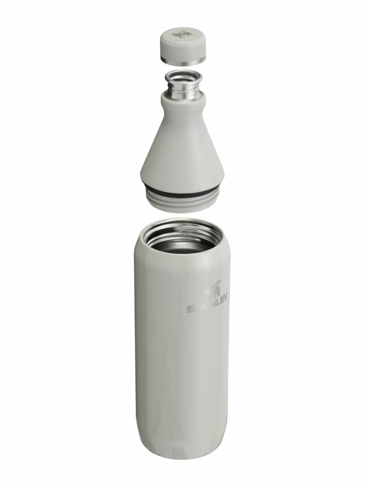 Stanley The All Day Slim Bottle on klassisen juomapullon mallinen terästermospullo, joka pitää juomasi kylmänä pitkään. Siro pullo sopii useimpiin autojen mukitelineisiin, ja on myös helppo kuljettaa vaikkapa repun sivutaskussa. Termospullo voidaan avata perinteisesti kierrekorkista, tai mikäli halutaan lisätä juoman sekaan vaikkapa jääpaloja, voidaan koko pullon kaula kiertää kätevästi irti. Tuotteen valmistuksessa on käytetty kierrätettyä ruostumatonta terästä.