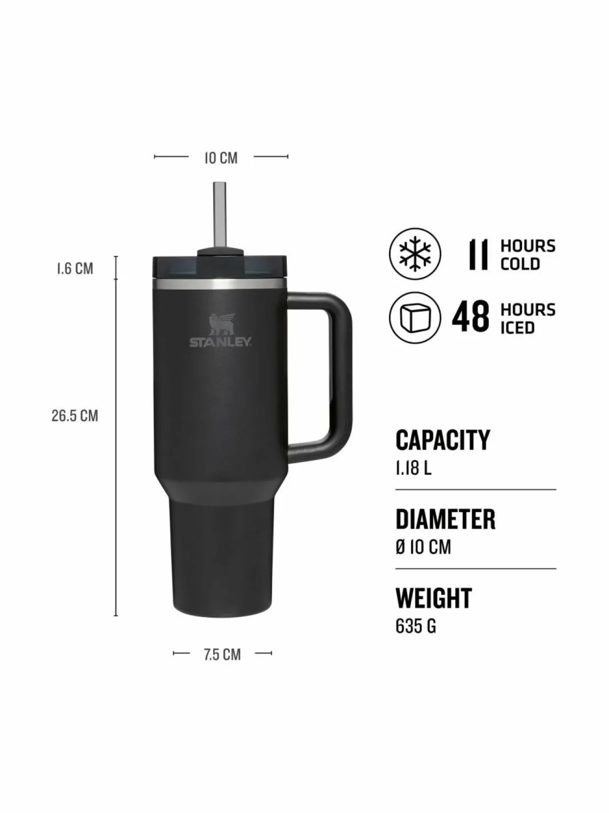 Trendikäs ja ikoninen Stanley termosmuki on todellinen katseenvangitsija. Kannessa on kolme asentoa: aukko pillille, leveä suuaukko juomista varten ilman pilliä, sekä suljettu kansi juoman läikkymisen estämiseksi.