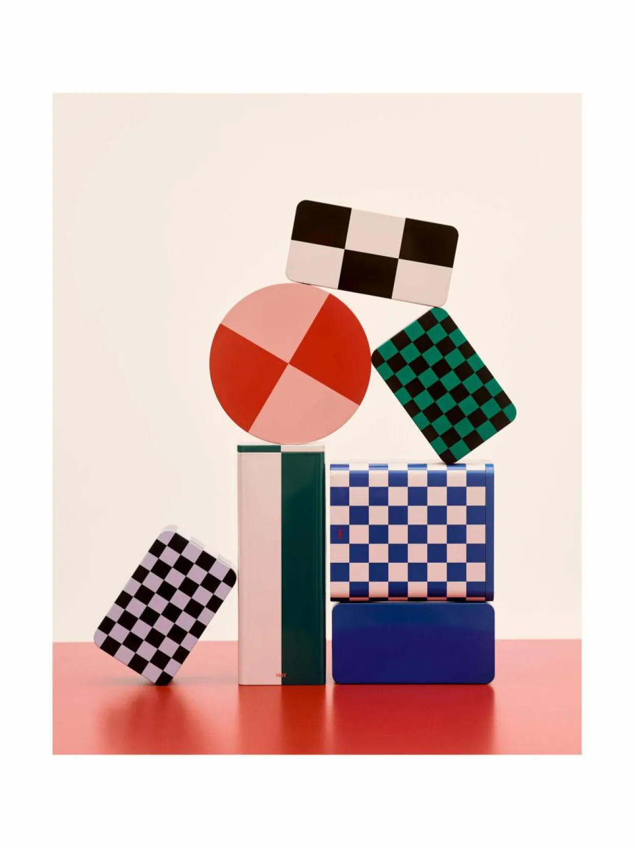 HAY:n Tin Container -sarjan säilytyslaatikot ovat sekä käytännöllisiä että koristeellisia. Laatikot ovat valmistettu tinasta ja niissä on värikkäät kuviot ja kiiltävä pinta. Kansi ja laatikko ovat tasaisesti linjassa, mikä luo tyylikkään ja saumattoman ulkonäön ja varmistaa samalla tiiviin sulkeutumisen, joka sopii kuiville elintarvikkeille.