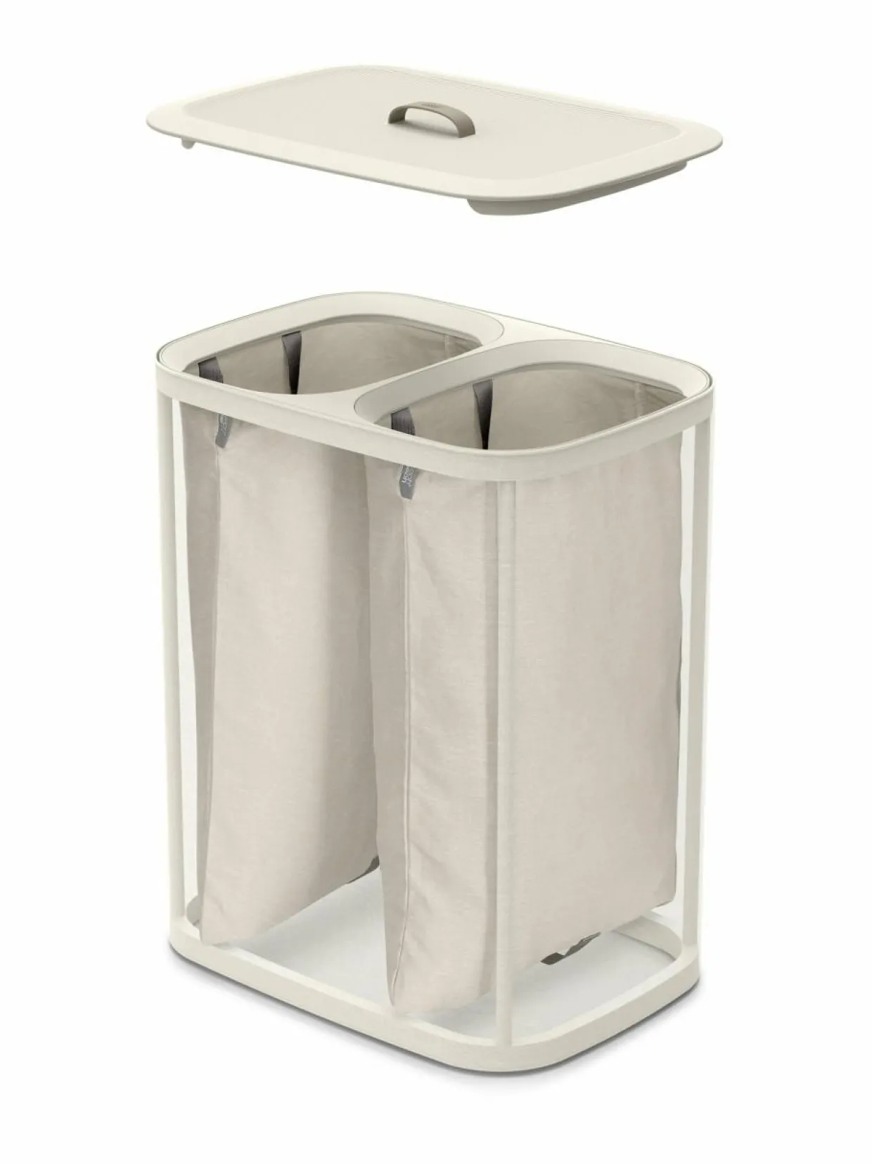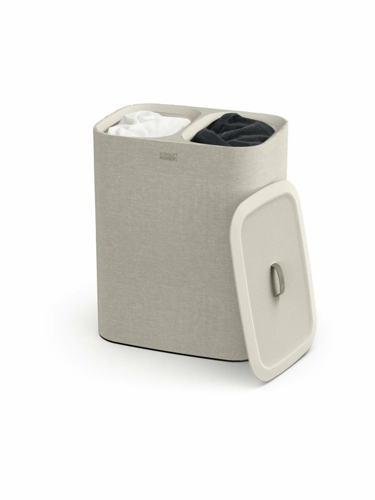 Tota sopii moneen tilaan ja sisustukseen. Tota- erotteleva pyykkikori helpottaa arkea erottelemalla vaalean ja tumman värisen pyykin omiin 45 litran lokeroihinsa. Pyykit kulkeutuvat kätevästi pyykkitupaan olalla kannettavista kantokahvoista. Pussin pohjassa oleva käytännöllinen apukahva helpottaa tyhjennystä. Tyhjät pyykkipussit asettuvat takaisin omiin lokeroihinsa vaivatta.