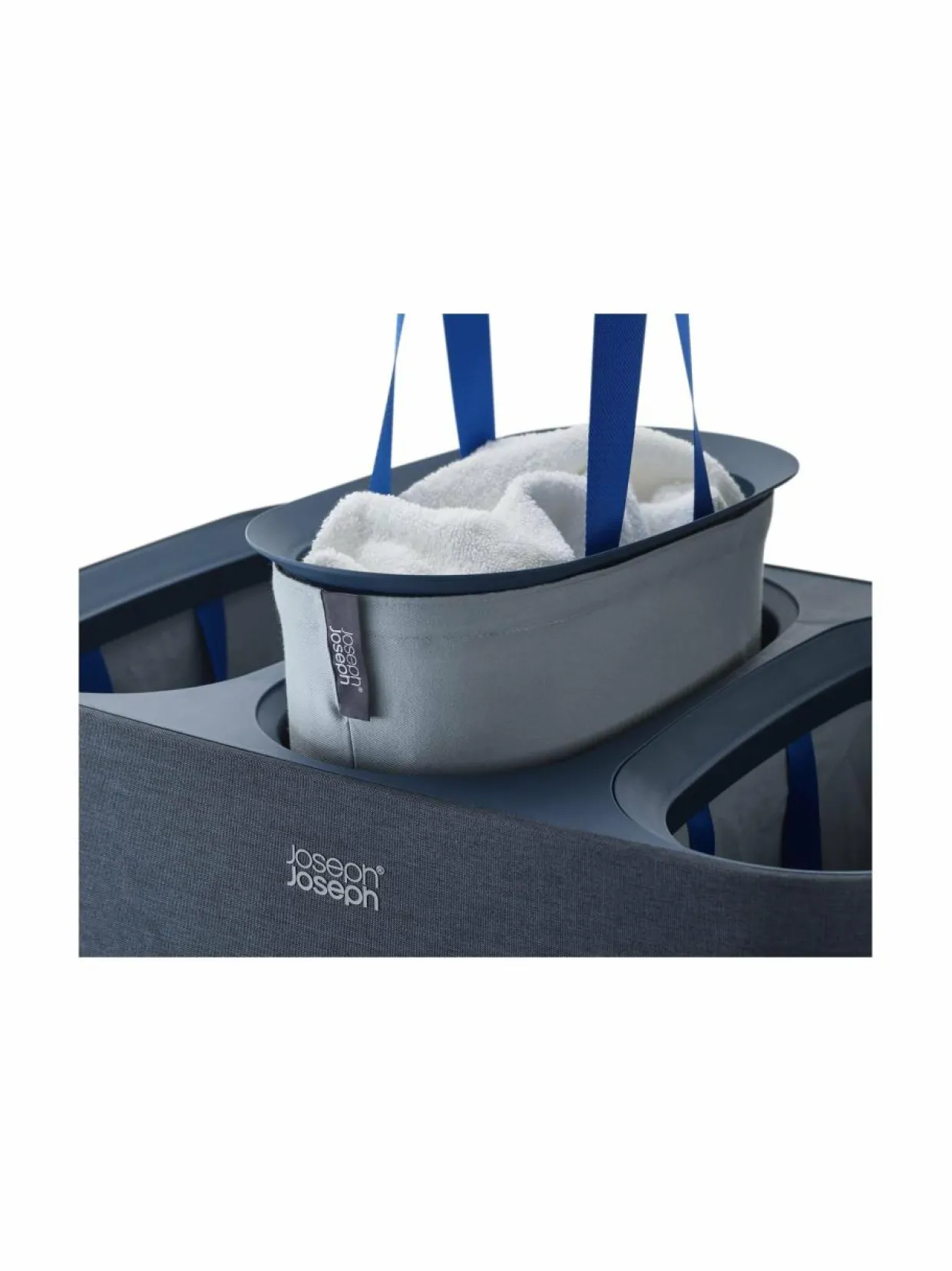 - Kannen alla 3 x 30 litran tekstiilistä tote-kassia, joihin voi lajitella pyykit