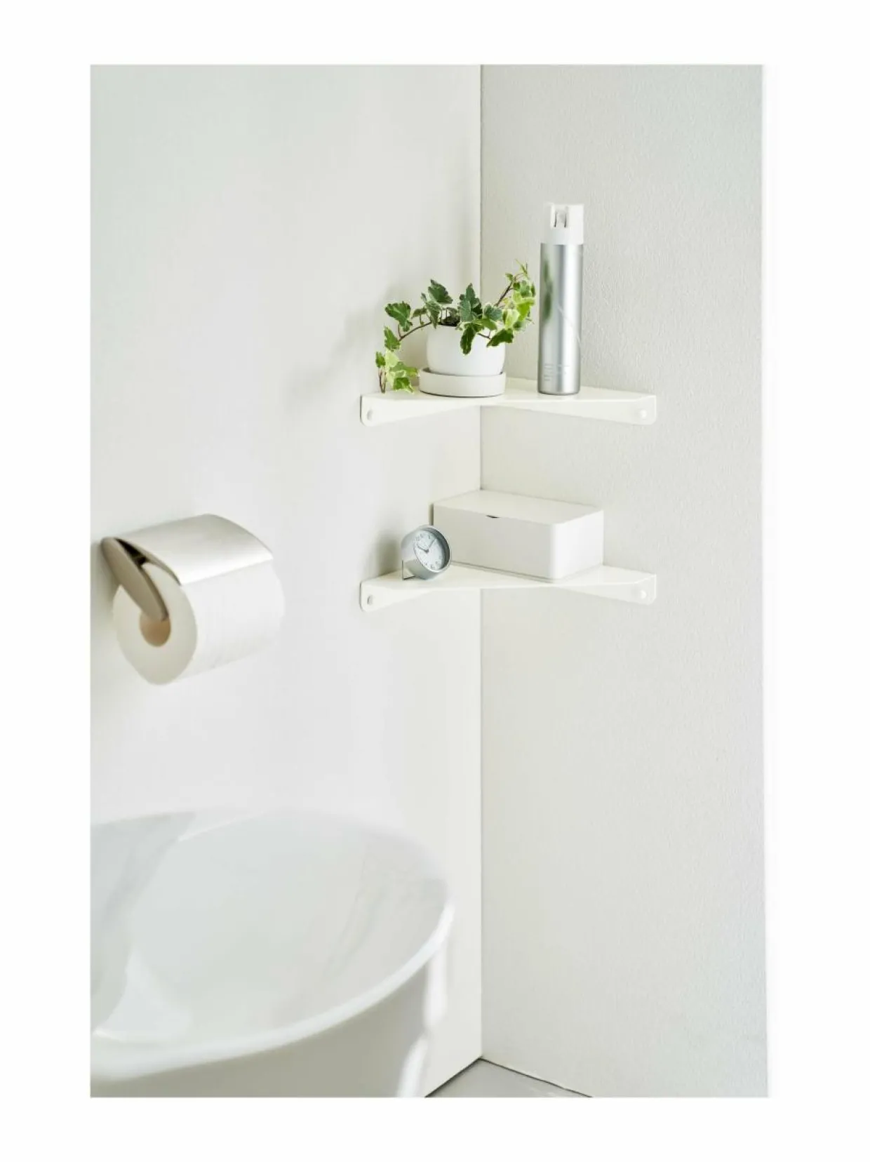 Tower-sarjan fiksu ja monikäyttöinen kulmahylly sujuvoittaa arkea kaikissa kodin huoneissa. Esimerkiksi makuuhuoneessa sängyn viereen ei aina mahdu perinteistä yöpöytää, jolloin mitoiltaan näppärä kulmahylly tarjoaa juuri sopivan paikan puhelimelle, lukulaseille tai pokkarille. Hyllyn kulmassa on pieni aukko puhelimen tai muun elektronisen laitteen latausjohtoa varten. Suunniteltu Japanissa.
