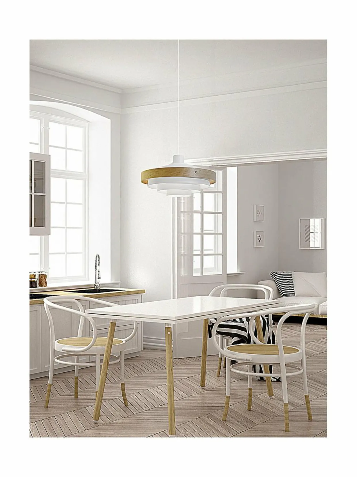 Tuotenumero168900600 ErityistäValonlähde myydään erikseen. MateriaaliMetalli, puu Korkeus24 cm Halkaisija40 cm Johdon pituus3 m ValmistusmaaKiina VäriWHITE / OAK Koko24 x 40 x 40 cm Avainsanatdesign by grönlund, kattovalaisin, valaisin, sisustus