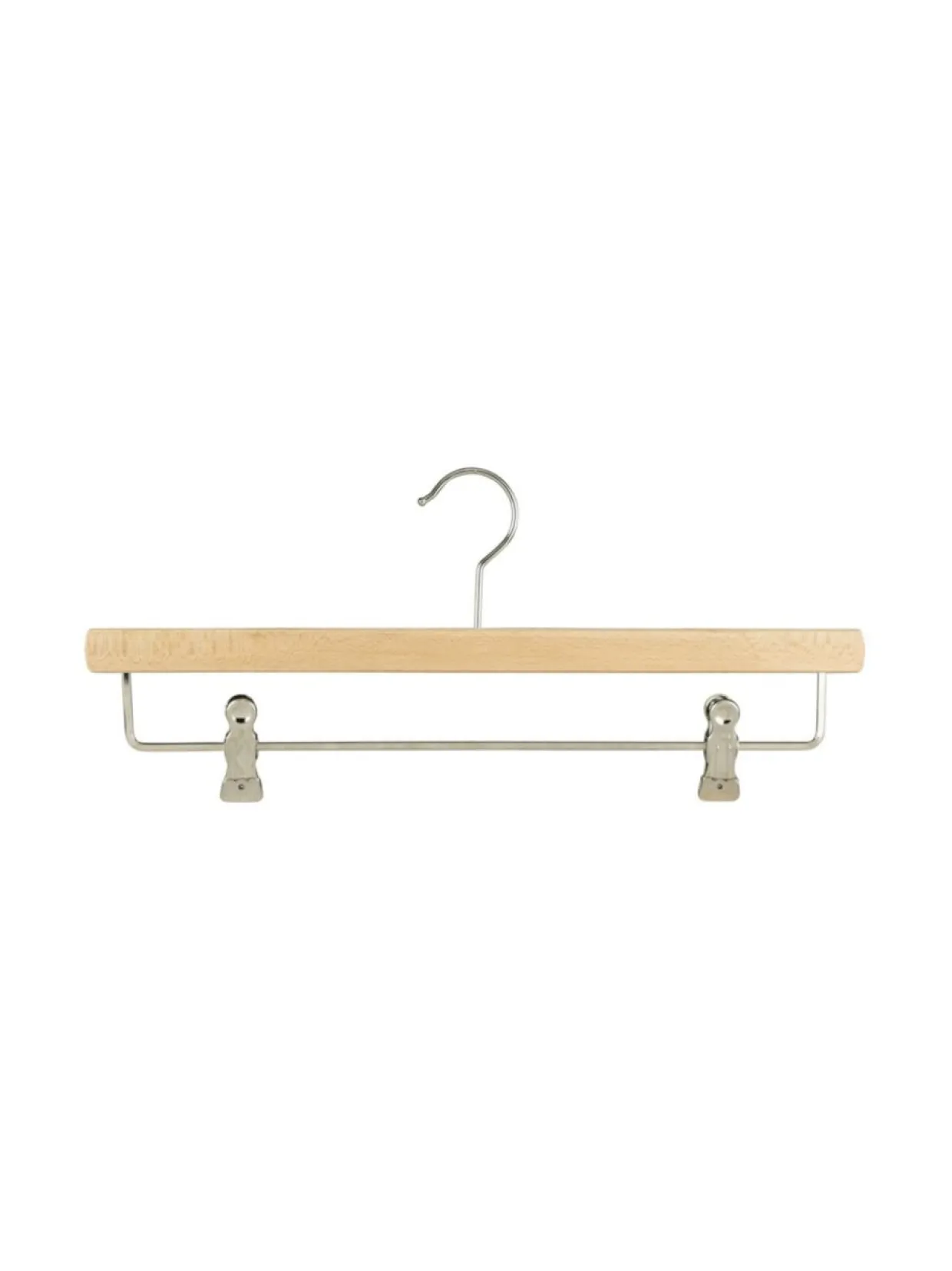 40 cm leveä, laadukas ripustin housuille. Liikuteltavissa nipistimissä on kitkakuminen päällyste, mikä estää vaatteiden liukumista. Ympäristöystävällinen, valmistuksessa käytetty pyökki on FSC™ (FSC-C123656)-sertifioitu (sertifikaatin numero SCS-COC-007973). Metalliosat korroosionkestäviä.