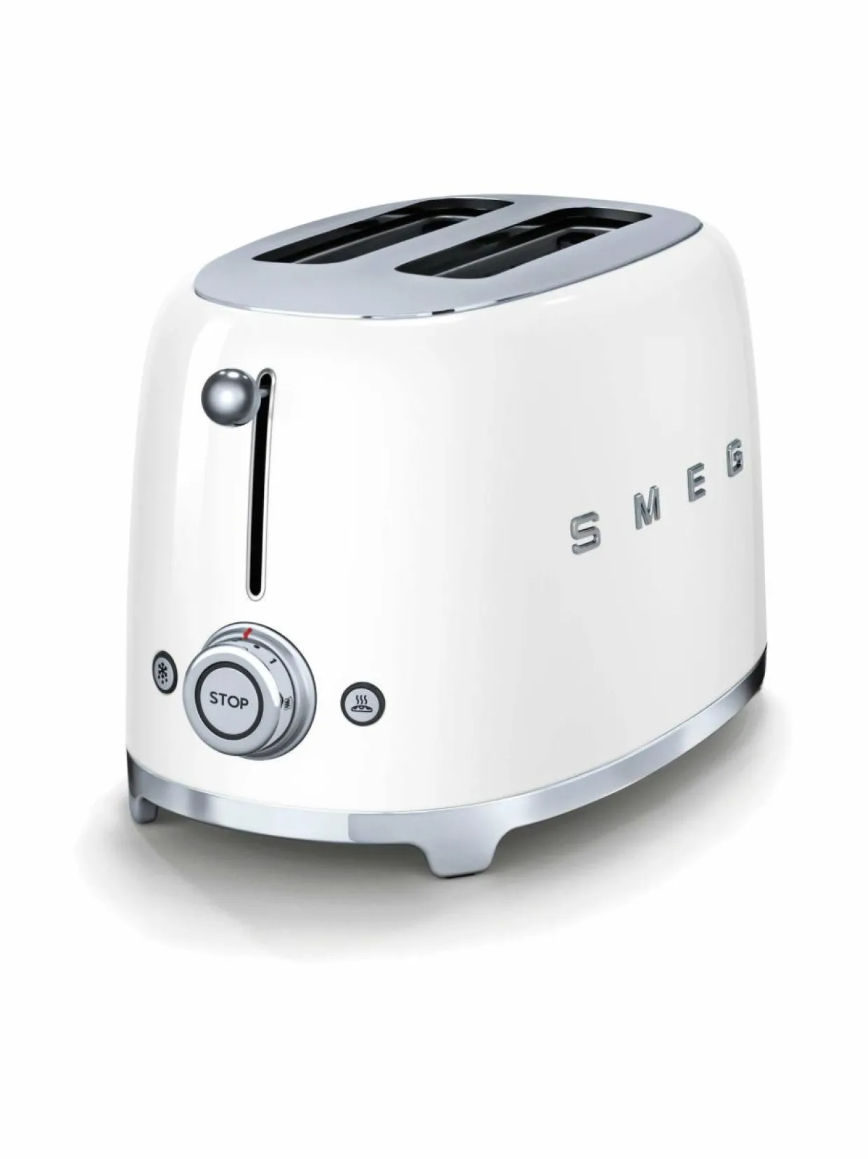 Muotoilultaan 50-luvun henkeä huokuva Smeg-leivänpaahdin on sekä tyylikäs että tehokas. Kahden viipaleen paahtimessa on 950 watin teho ja kuusi valinnaista paahtoastetta. Leveisiin paahtoaukkoihin mahtuvat muhkeammatkin sämpylät ja sulatustoiminto lämmittää kohmeisemmatkin leipäviipaleet. Leivänpaahdin on valmistettu ruostumattomasta teräksestä, joka on helppo pitää puhtaana.