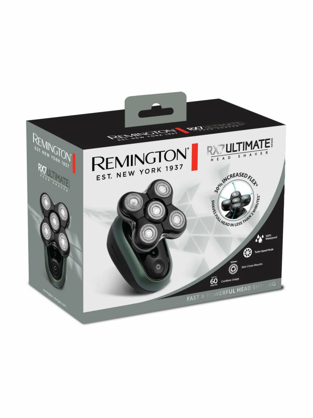 Koe täydellisesti ajeltu pää helposti Ultimate Series RX7 -hiustenleikkurilla jopa kahdessa minuutissa. RX7 on varustettu viidellä leikkuupäällä, jotka mukautuvat pään muotoihin, mahdollistaen nopean ja tarkan ajon jopa 0,2 mm pituuteen. Turbo Speed -toiminto käsittelee paksummatkin hiukset vaivattomasti.