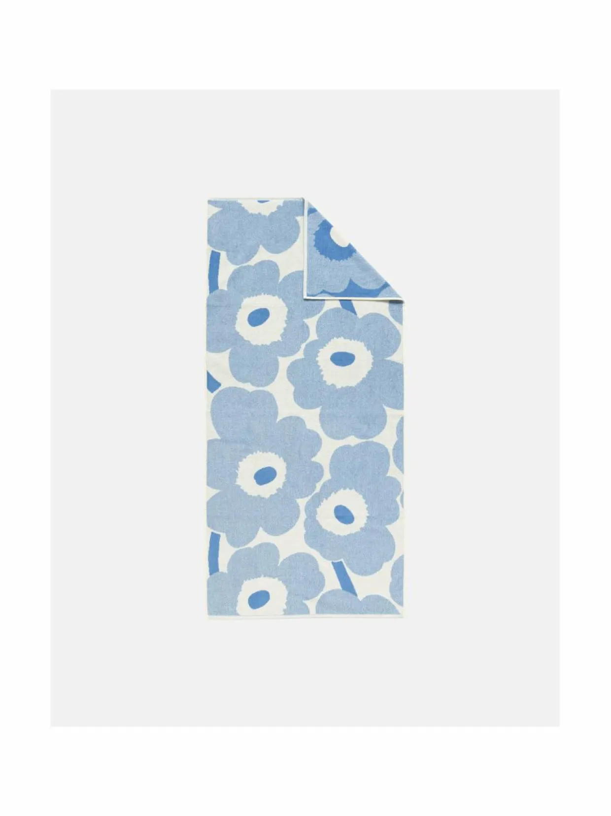 Unikko-kuvioitu pyyhe on valmistettu 100-prosenttisesta luomupuuvillafroteesta. Luovuutta ja rohkeutta symboloiva Unikko syntyi aikana, jolloin Marimekon kuviomaailmaan ei juuri kuulunut kukkia. Maija Isolaa kukka-aihe kuitenkin kiinnosti, ja hän päätti suunnitella kokonaisen sarjan uudenlaisia vahvoja kukkakuoseja.