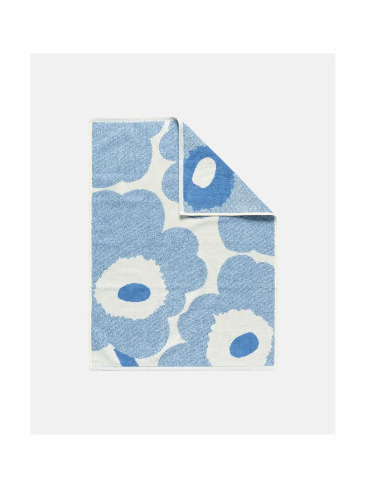 Unikko-kuvioitu pyyhe on valmistettu 100-prosenttisesta luomupuuvillafroteesta. Luovuutta ja rohkeutta symboloiva Unikko syntyi aikana, jolloin Marimekon kuviomaailmaan ei juuri kuulunut kukkia. Maija Isolaa kukka-aihe kuitenkin kiinnosti, ja hän päätti suunnitella kokonaisen sarjan uudenlaisia vahvoja kukkakuoseja.