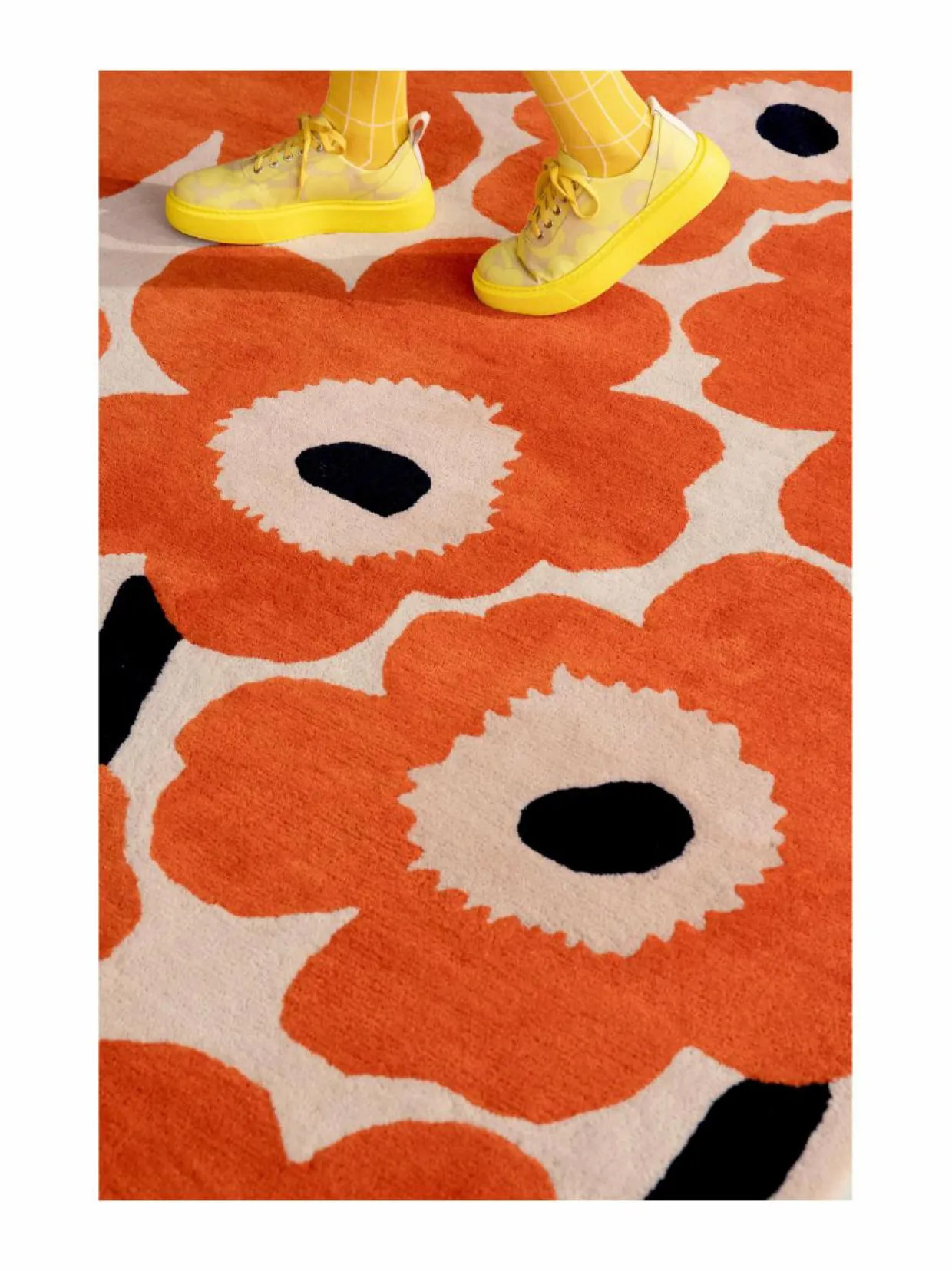 Marimekko on yhteistyössä hollantilaisen Brink & Campmanin kanssa lanseerannut houkuttelevan mattomalliston. Brink & Campman on valmistanut mattoja yli 125 vuoden ajan. Näissä ajattomissa matoissa on Marimekon eloisa väripaletti ja hienoimmat ominaisuudet, jotka lisäävät ripauksen ylellisyyttä jokaiseen kotiin. Käsin tuftattu 100 % Uuden-Seelannin villasta, tämä matto on ihanan pehmeä jalkojen alla.