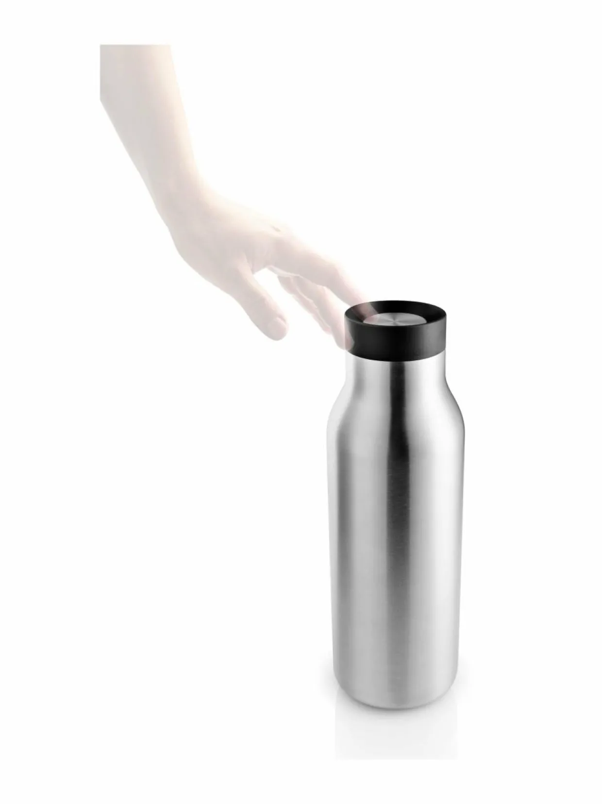Eva Solon Urban-termospullo pitää juoman kylmänä tai kuumana usean tunnin ajan. Pullo sulkeutuu täysin tiiviisti, joten se on helppo ottaa mukaan vaikka laukkuun tai autoon. Avaaminen ja sulkeminen käy kätevästi yhdellä kädellä. Pullo on valmistettu ruostumattomasta teräksestä, ja sen voi pestä astianpesukoneessa.