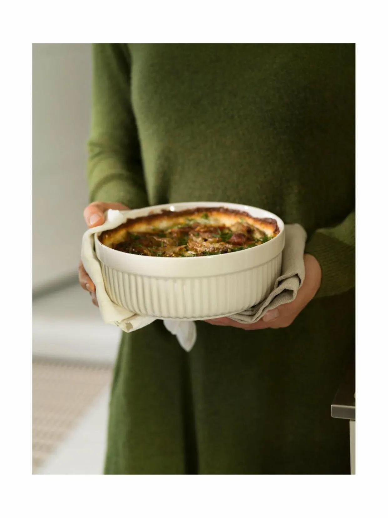 Kestävät uuniastiat voi huoletta nostaa suoraan pöytään. Vitroposliinista valmistetut tuotteet sietävät kuumennuksen mikroaaltouunissa tai tavallisessa uunissa enintään 250 °C:ssa. Konepestäviä astioita voi käyttää myös pakastukseen. Design Tapio Yli-Viikari.