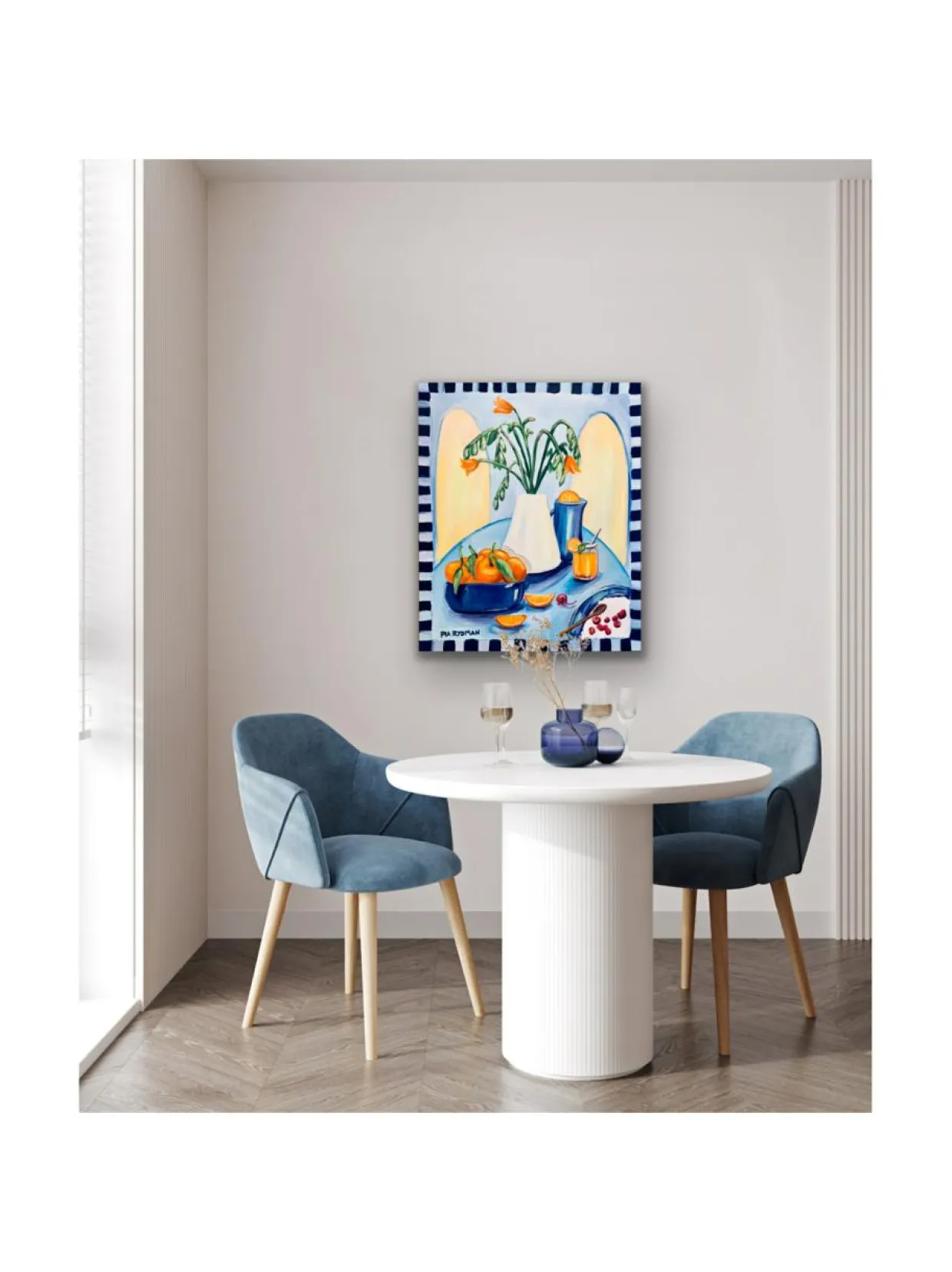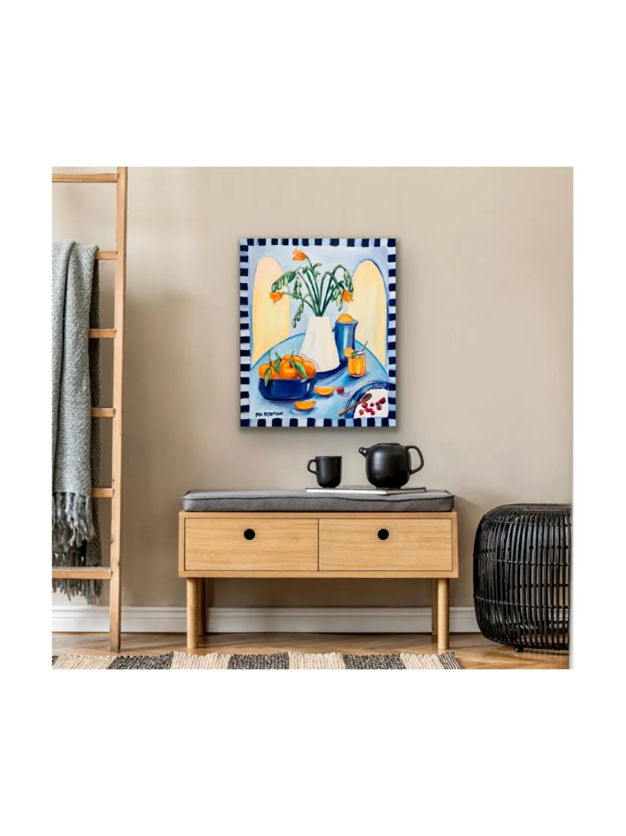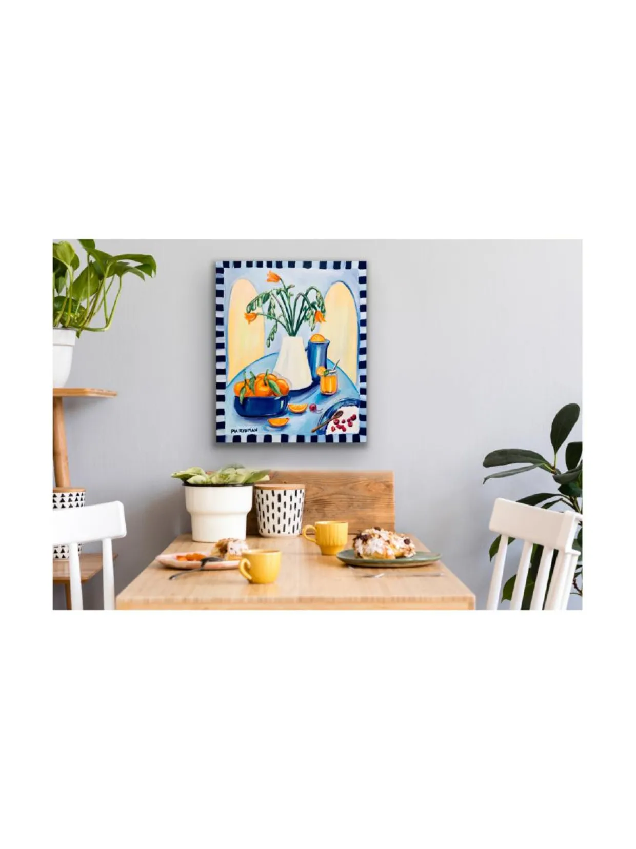 ”Välipala välimerellä” on taiteilija Pia Rydmanin alkuperäinen öljyvärimaalaus. Teos on alunperin maalattu tilauksesta Kevätmessut 2023 Trendiosastolle. Taulu on kooltaan 73×60 cm, maalattu pellavapohjalle ja se on ripustusvalmis.