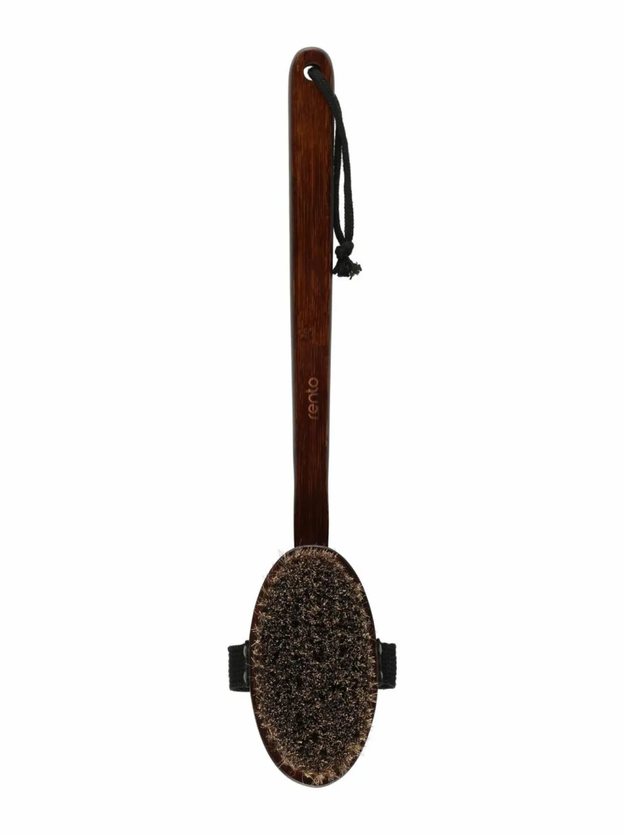 Varrellinen pesuharja bambusta ja luonnonharjaksesta. Hiero ihosi puhtaaksi kevyesti kuorivalla harjalla ja lempisaippuallasi. Virkistää vartalosi verenkiertoa. Kahva on helposti irrotettavissa, jolloin pelkkää harjaosaa on mahdollista käyttää juuttisen käsilenkin kanssa. Harjan pyöristetyt muodot ja bambuöljyllä käsitelty pinta tuntuvat mukavalta kädessä. Käsi- ja ripustuslenkki juuttia.