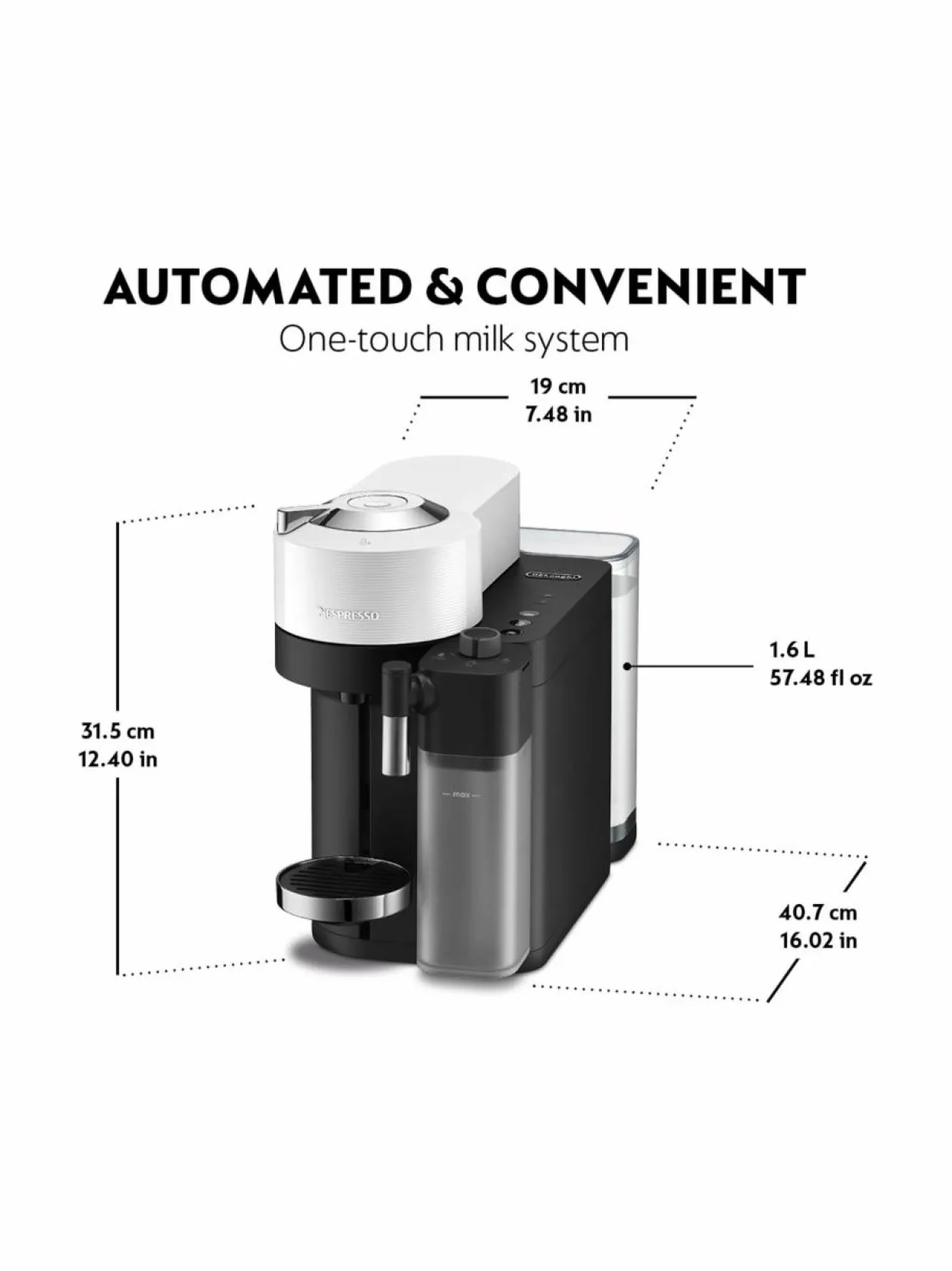 Käyttäjäystävällinen laite on helppo pitää puhtaana. Tilava 0,5 litran maitokannu puhdistuu automaattisella puhdistustoiminnolla ja sen voi käytön jälkeen laittaa takaisin jääkaappiin. Kun on kalkinpoiston aika, siitä ilmoittaa merkkivalo. Käytännöllisen laitteen irrotettavat osat sekä maitokannun voi pestä astianpesukoneessa.
