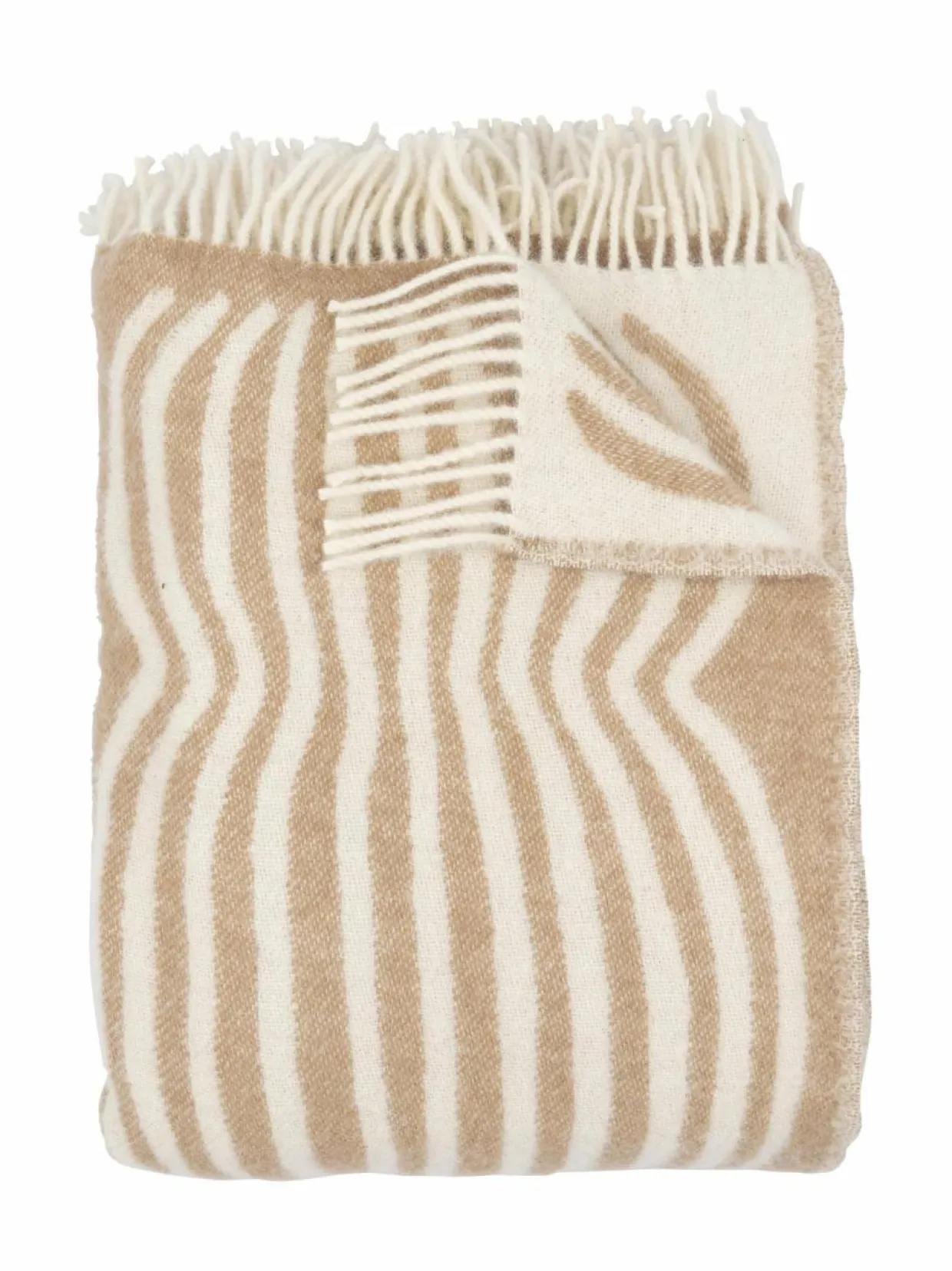 Minna Niskakankaan suunnittelema lämminhenkinen Vilja-kuosi on saanut inspiraationsa alkusyksyn tuulessa huojuvista kypsistä viljapelloista. Vilja-malliston moderni muotokieli sopii täydellisesti suomalaiseen ja skandinaaviseen kotiin. Vilja-torkkupeitto lämmittää ihanasti ja tuo kaunista ilmettä kotiin. Villaisen peiton koko on 130 x 170 cm.