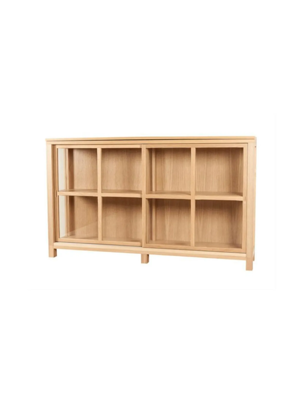 Tuotteen mitat: leveys 140cm korkeus 83cm syvyys 31cmTuotenumero1444440 Materiaalitammi, MDF Hoito-ohjeetPyyhintä kostealla liinalla Väri8 AvainsanatKirjahylly, astikaappi, kaappi, liukovikaappi, vitriini, senkki, taso