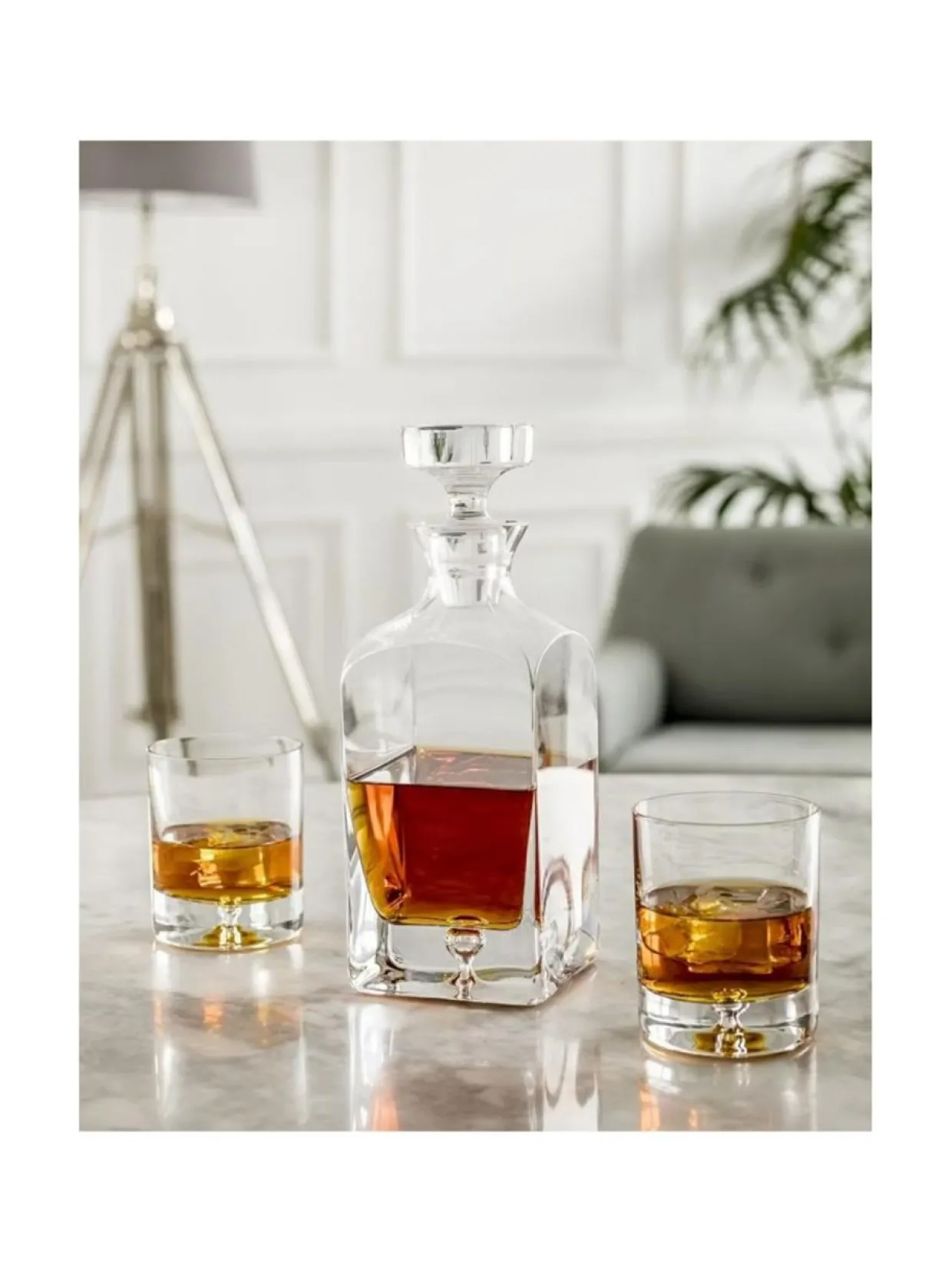 Kaunis, käsinvalmistettu paksupohjainen viskilasi viskilasi, jossa paksussa pohjassa näyttävyyttä tuova kupla.