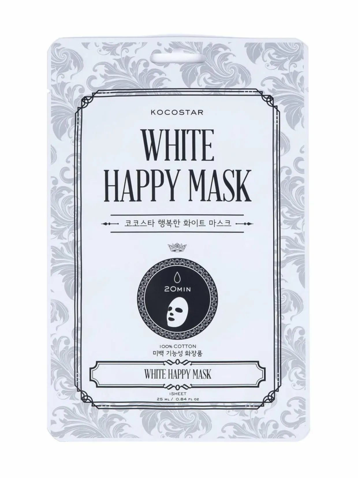 KOCOSTAR White Happy Mask -kasvonaamio kirkastaa ihoa ja tekee siitä terveemmän näköisen. Anna naamion vaikuttaa kasvoilla 20 minuuttia.