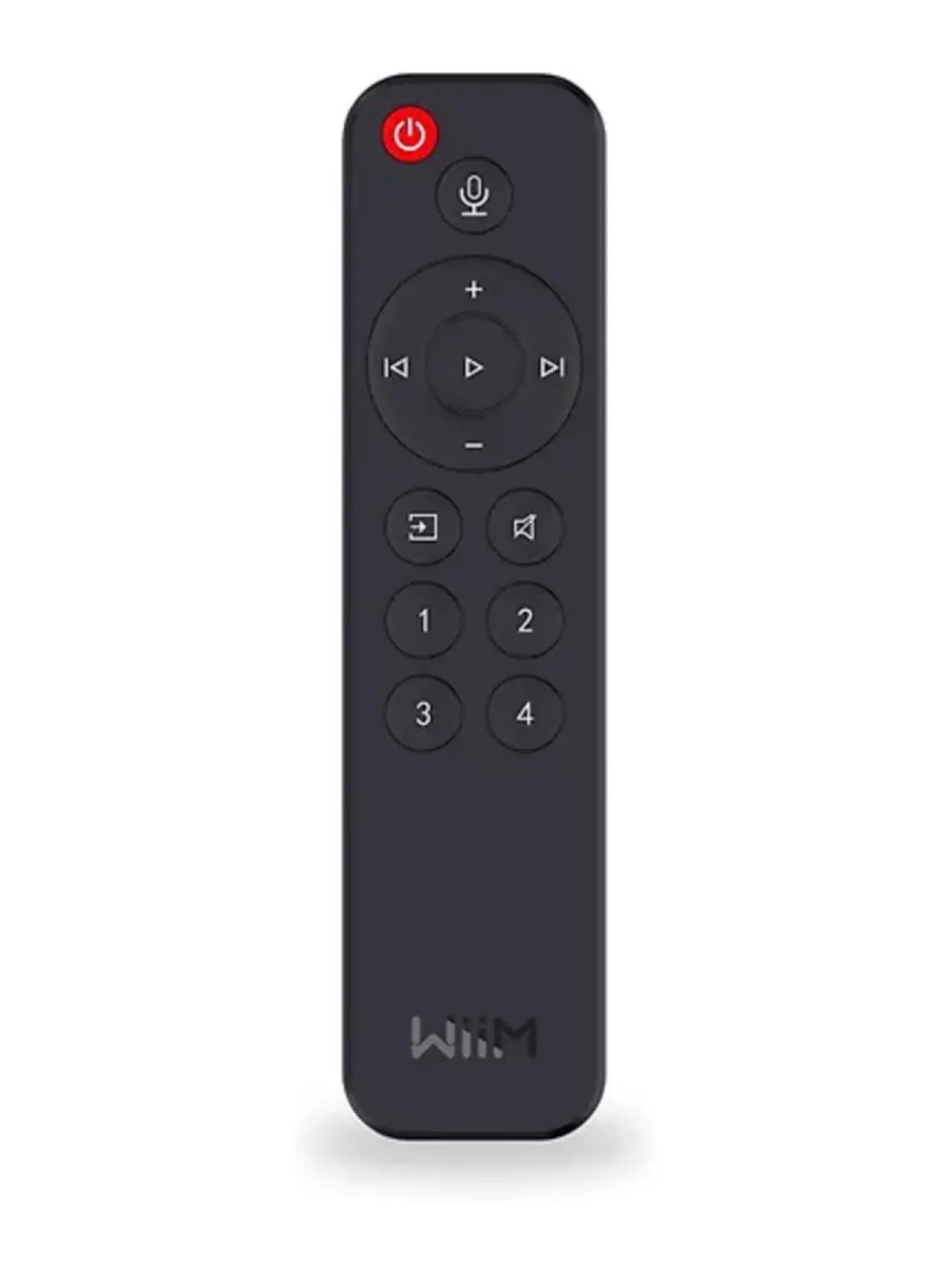 Mukana toimitetaan myös WiiM voice remote helppoa ohjausta ja ääniohjausta varten.