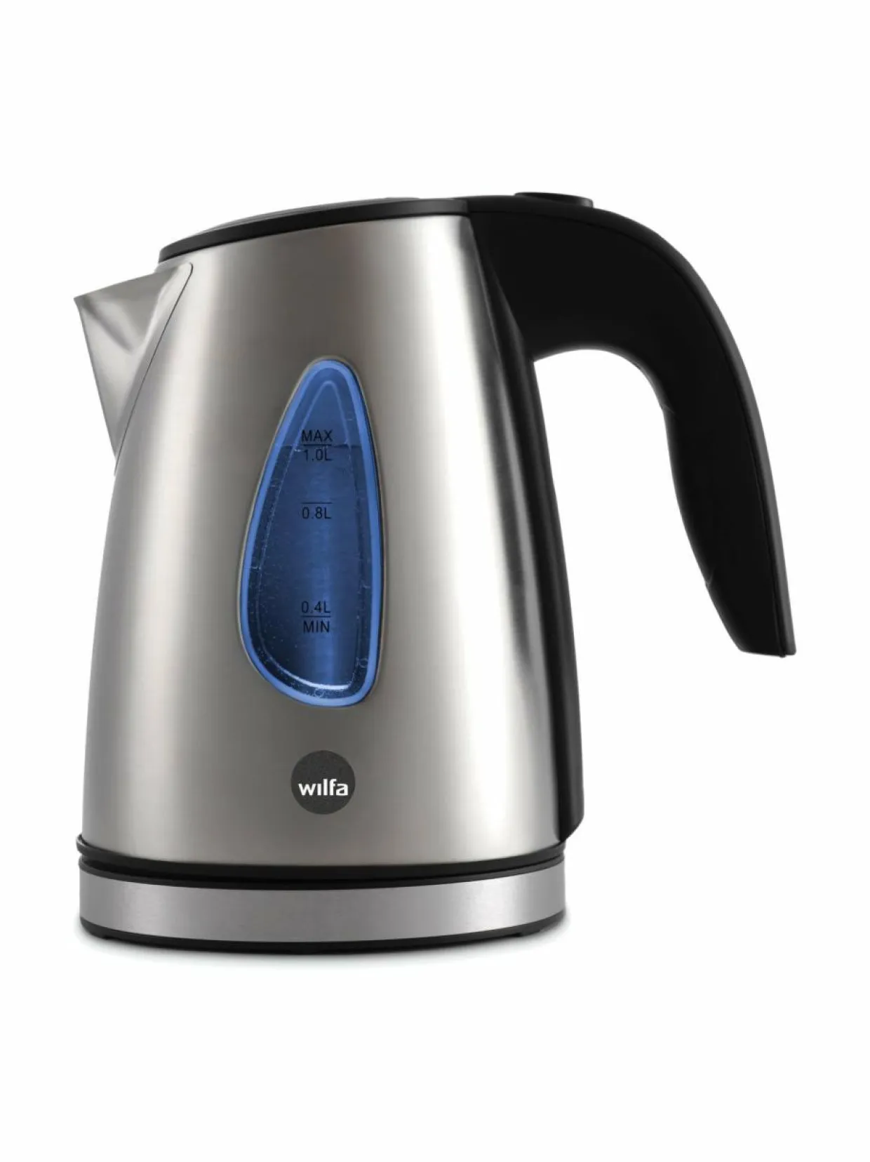 Wilfan kompakti, yhden litran Wilfa WK-5 Boil -vedenkeitin kiehauttaa veden nopeasti ja sammuu automaattisesti. Sivun mitta-asteikon avulla keität aina sopivan määrän vettä. Johdoton, ruostumattomasta teräksestä valmistettu kannuosa kääntyy alustalla täydet 360 astetta.