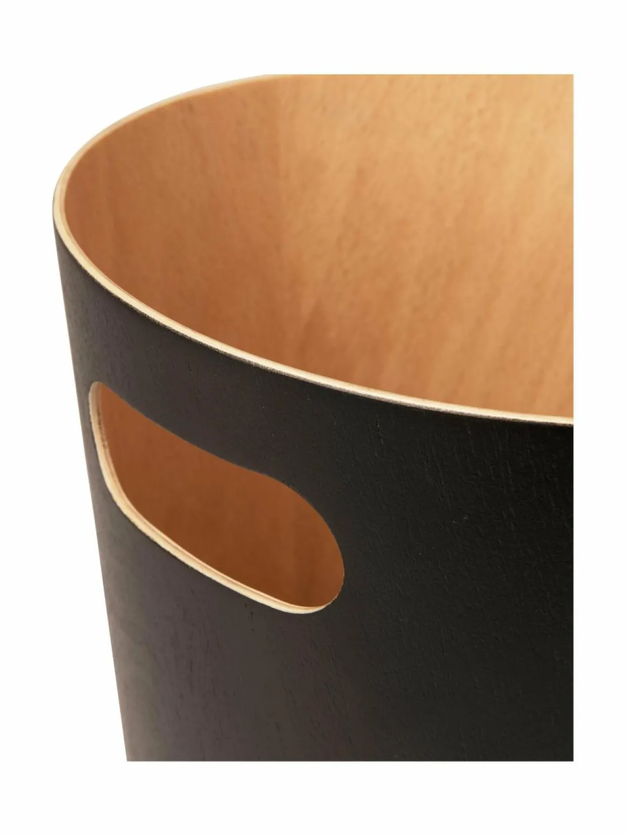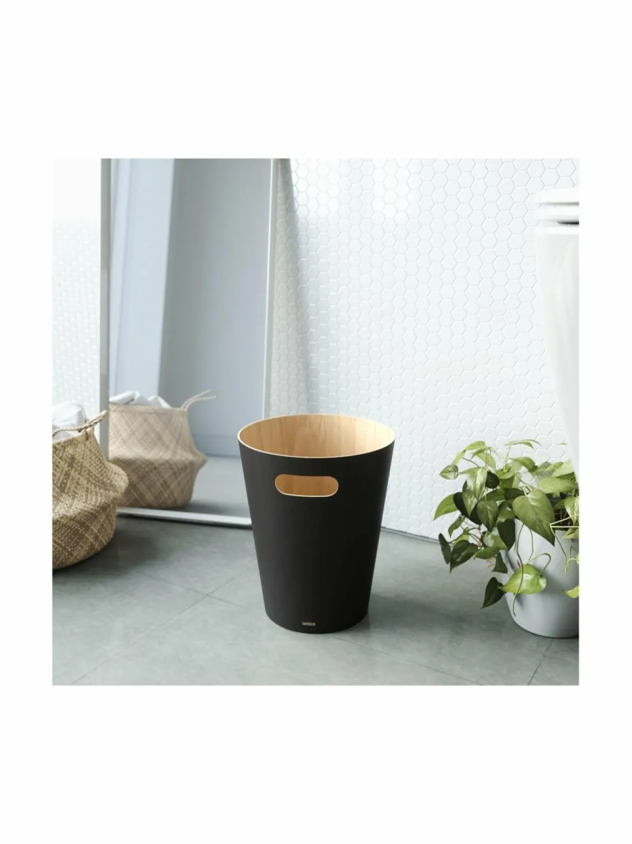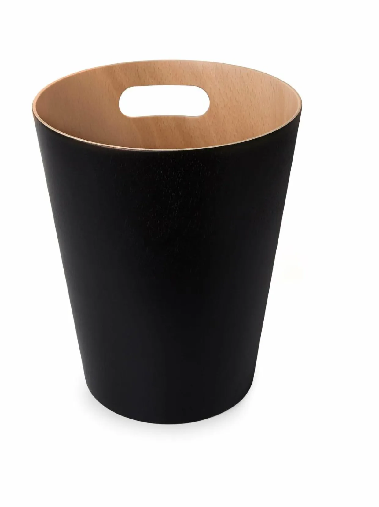 Pyökistä valmistettu roskakori viimeistelee sisustuksen. Korkeus 28 cm ja halkaisija 23 cm.
