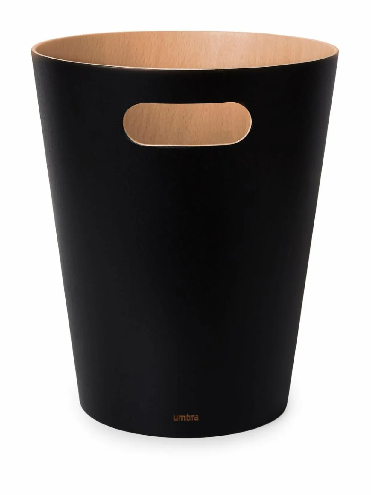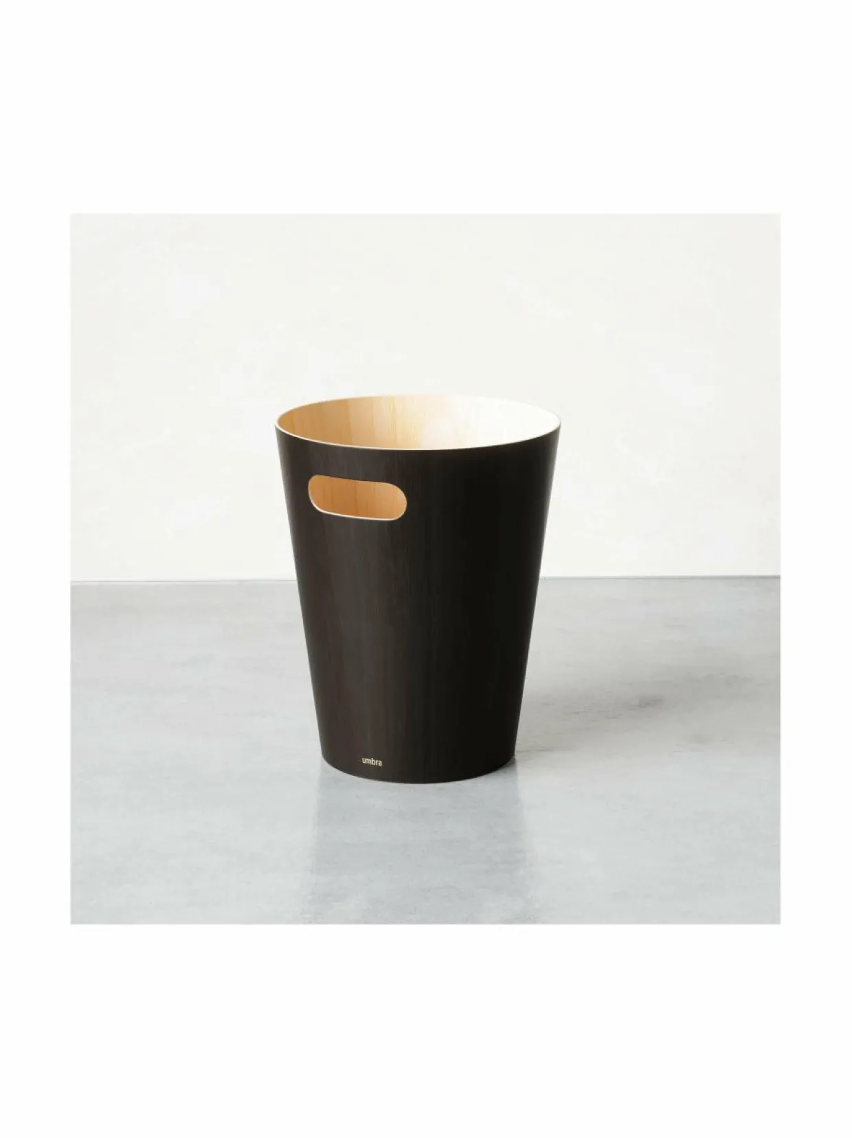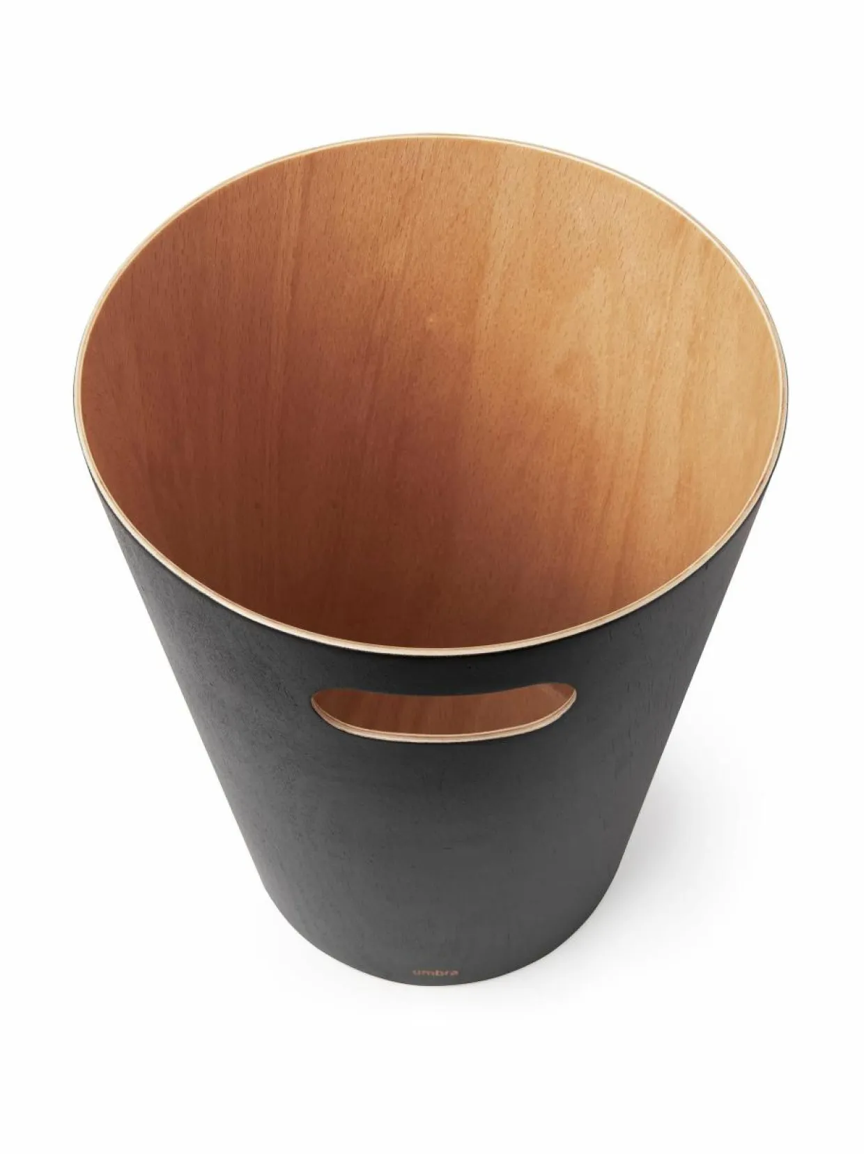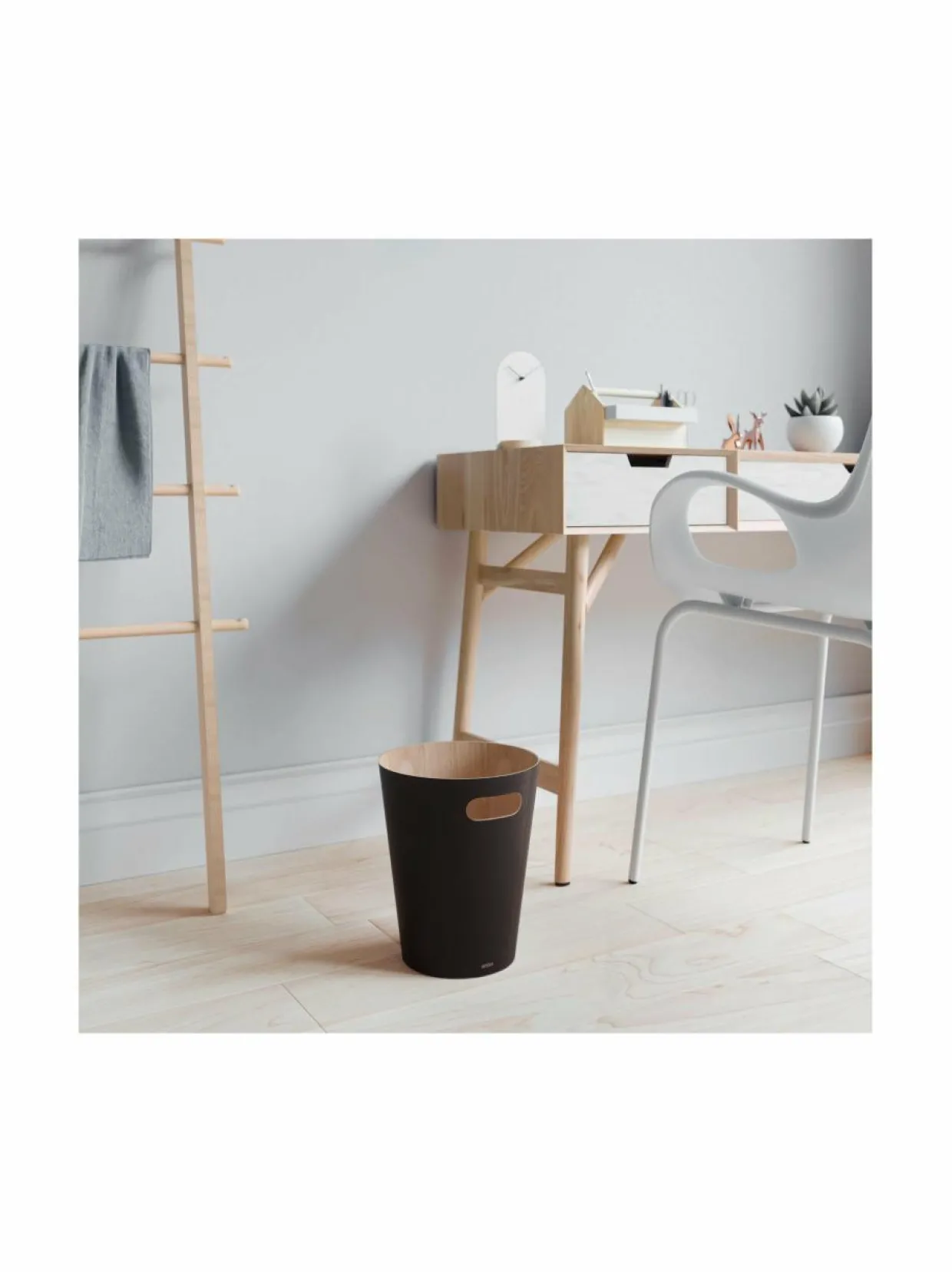 Pyökistä valmistettu roskakori viimeistelee sisustuksen. Korkeus 28 cm ja halkaisija 23 cm.