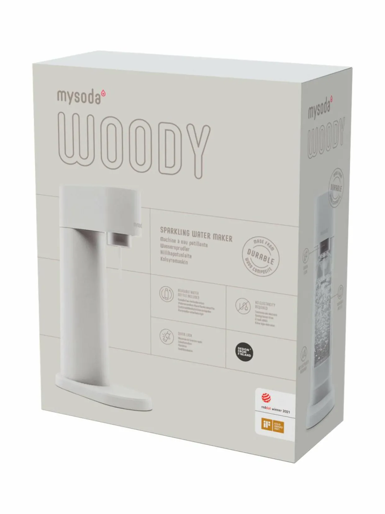 Mysoda Woody nostaa hiilihapotuslaitteiden ympäristöystävällisyyden uudelle tasolle. Laitteen pinnan puuhiput ja hienovarainen puun tuoksu tuovat palan metsää tyylikkäällä tavalla keittiöösi. Laitteen runko on valmistettu muovin sijaan puupohjaisesta biokomposiitista, jonka tuotanto perustuu lähes 100 % uusiutuviin raaka-aineisiin. Woody on suunniteltu helpottamaan arkeasi miellyttävällä tavalla.