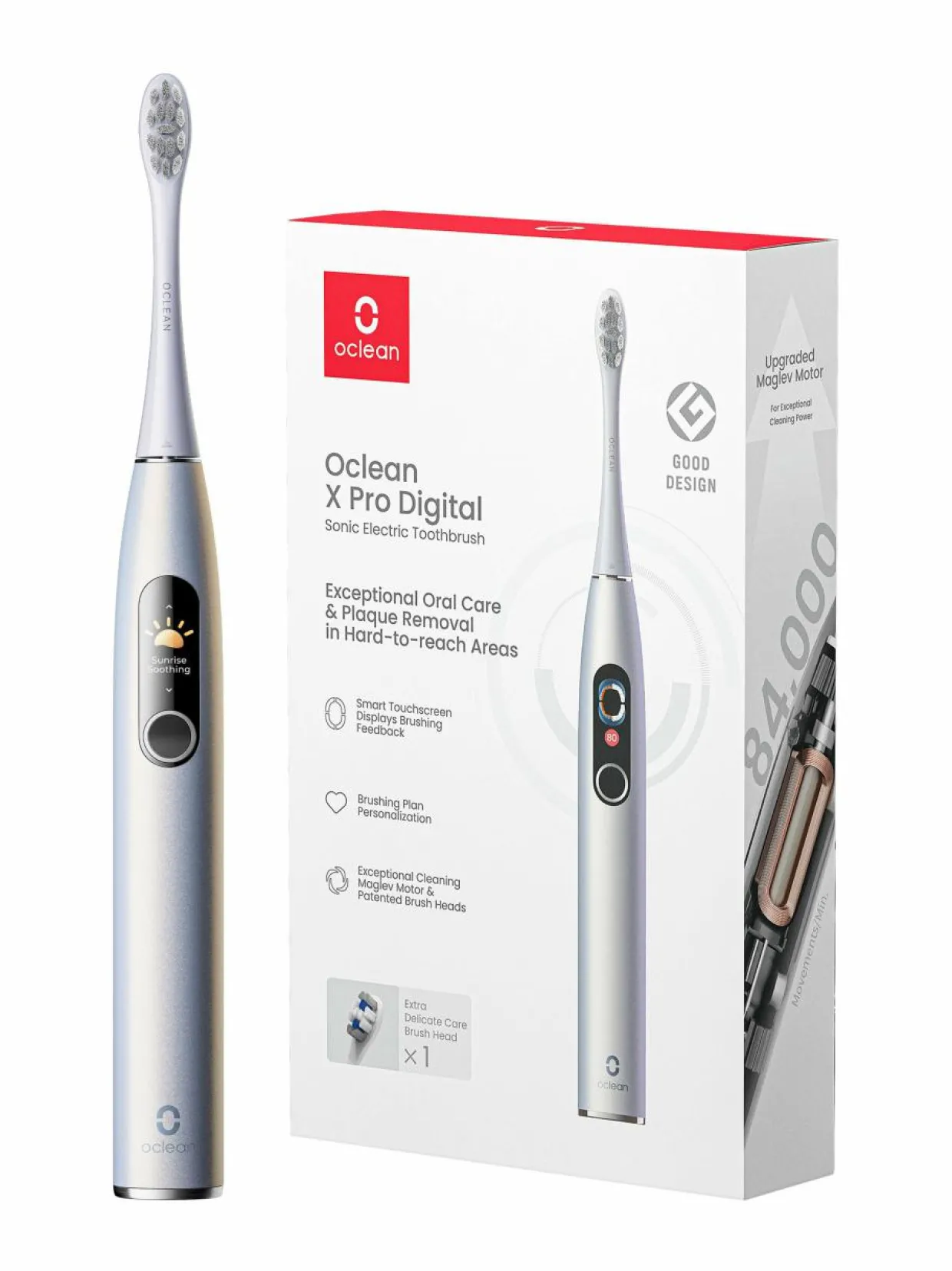 Oclean X Pro Digital -sähköhammasharja on tehokas ja älykäs hammasharja, joka tarjoaa poikkeuksellisen tasokkaan suuhygienian. Se on varustettu älykkäällä kosketusnäytöllä, joka mahdollistaa hammasharjan mukauttamisen omiin tarpeisiisi. Hammasharjassa on neljä puhdistustilaa, jotka sopivat eri tarpeisiin. Se on vedenkestävä ja siinä on pitkä akun kesto. Pakkaus sisältää hammasharjan, latausaseman, USB-johdon, neljä harjaspäätä ja matkakotelon. Hammasharjan mitat ovat 13,8 x 4 x 22,8 cm.