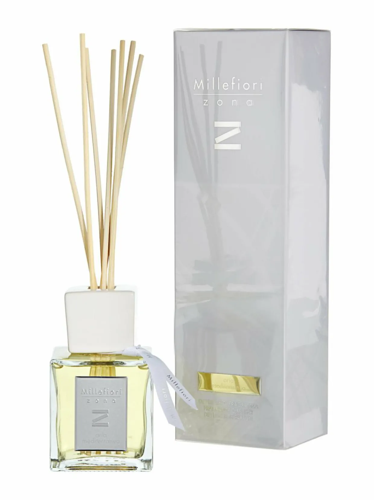 Tuoksun voimakkuuden voi sopeuttaa huoneeseen diffuuseriin asetettavien puutikkujen määrää muuttamalla. Pakkauksessa on elegantti lasipullo sekä puiset tuoksutikut.Materiaalituoksu, vesi ja alkoholi Pakkauskoko100 ml tai 250 ml TuotesarjaZona ValmistusmaaItalia AvainsanatMillefiori, huonetuoksu, diffuuseri, neilikka, sitrus,
