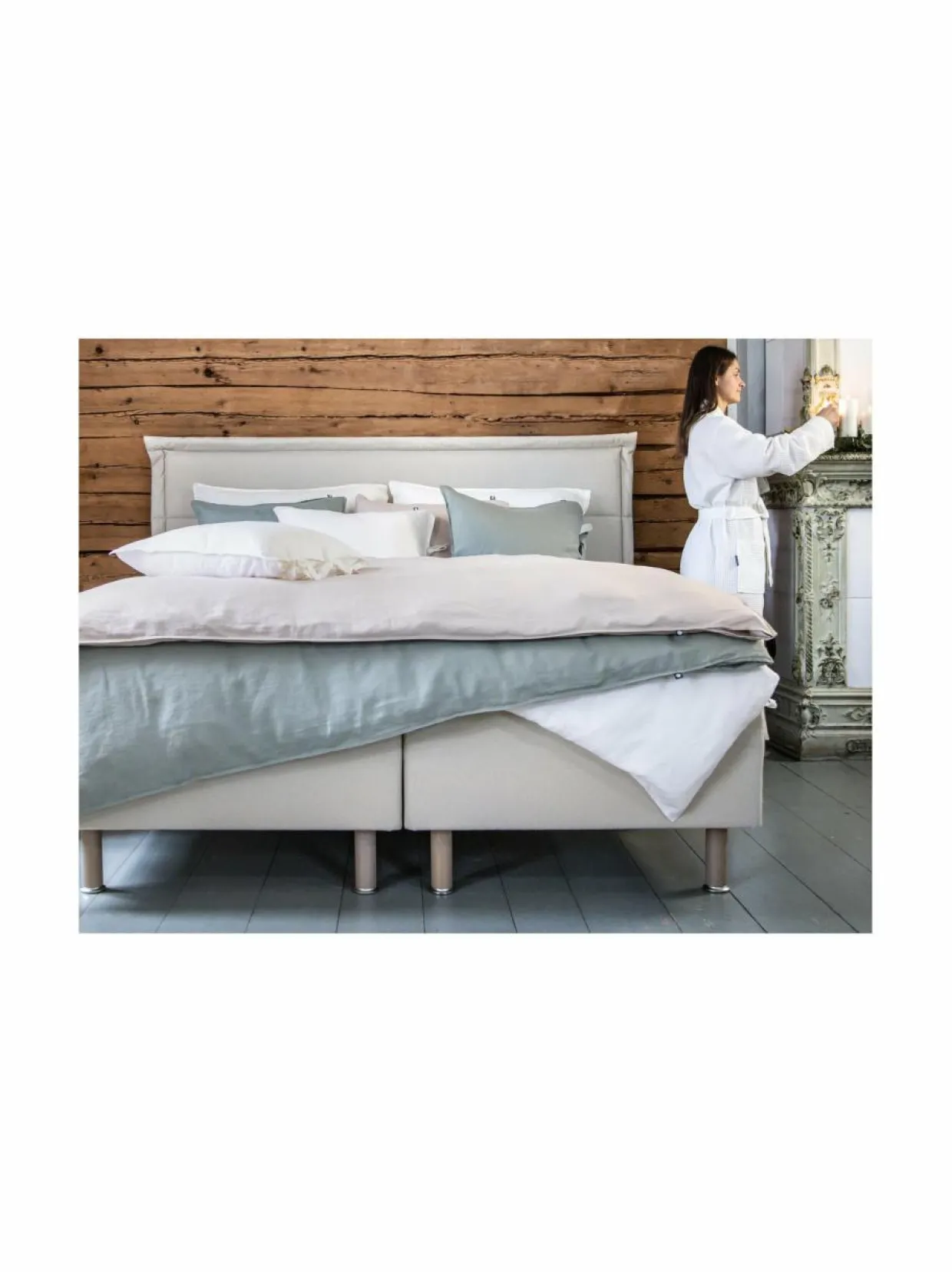 Tyylikäs Familon Zone sängynpääty on korkealaatuinen valinta vaativaankin makuun. Verhoillun sängynpäädyn rennon pehmeä ilme ja ajaton sisustuskangas sopivat yhtä hyvin skandinaavisen pelkistettyyn, kuin runsaampaankin makuuhuoneeseen ja petaustyyliin. Sängynpääty seisoo omalla painollaan sängyn ja seinän välissä, sitä ei kiinnitetä sänkyyn eikä seinään. Sängynpäädyssä on kevyt runko, joten sitä on helppo siirtää ja käsitellä.